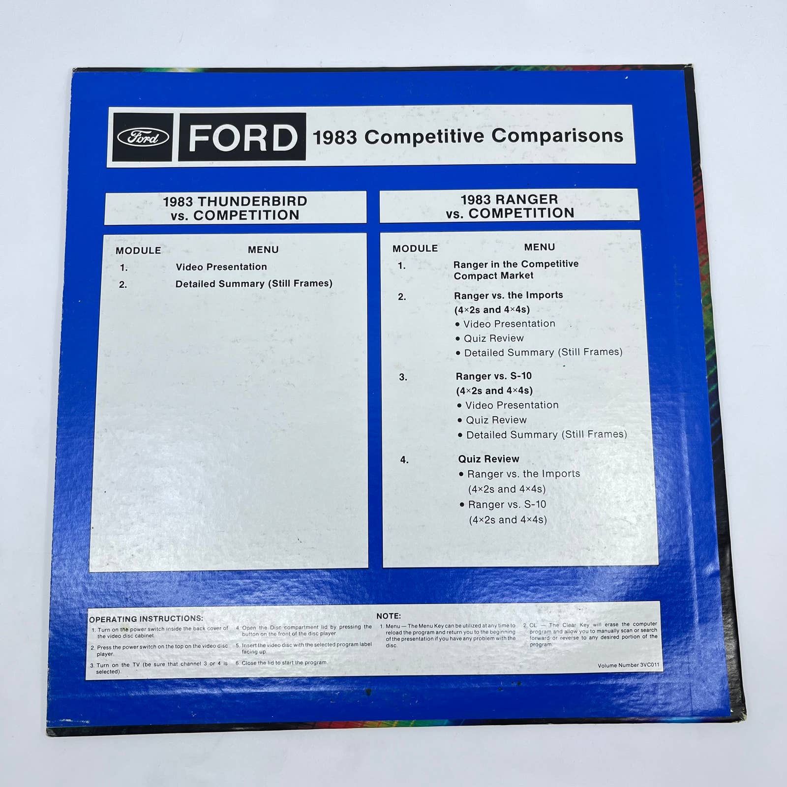 1983 Ford Laserdisc Laser Disc Competitive Comparisons Ranger & Thunderbird TA3