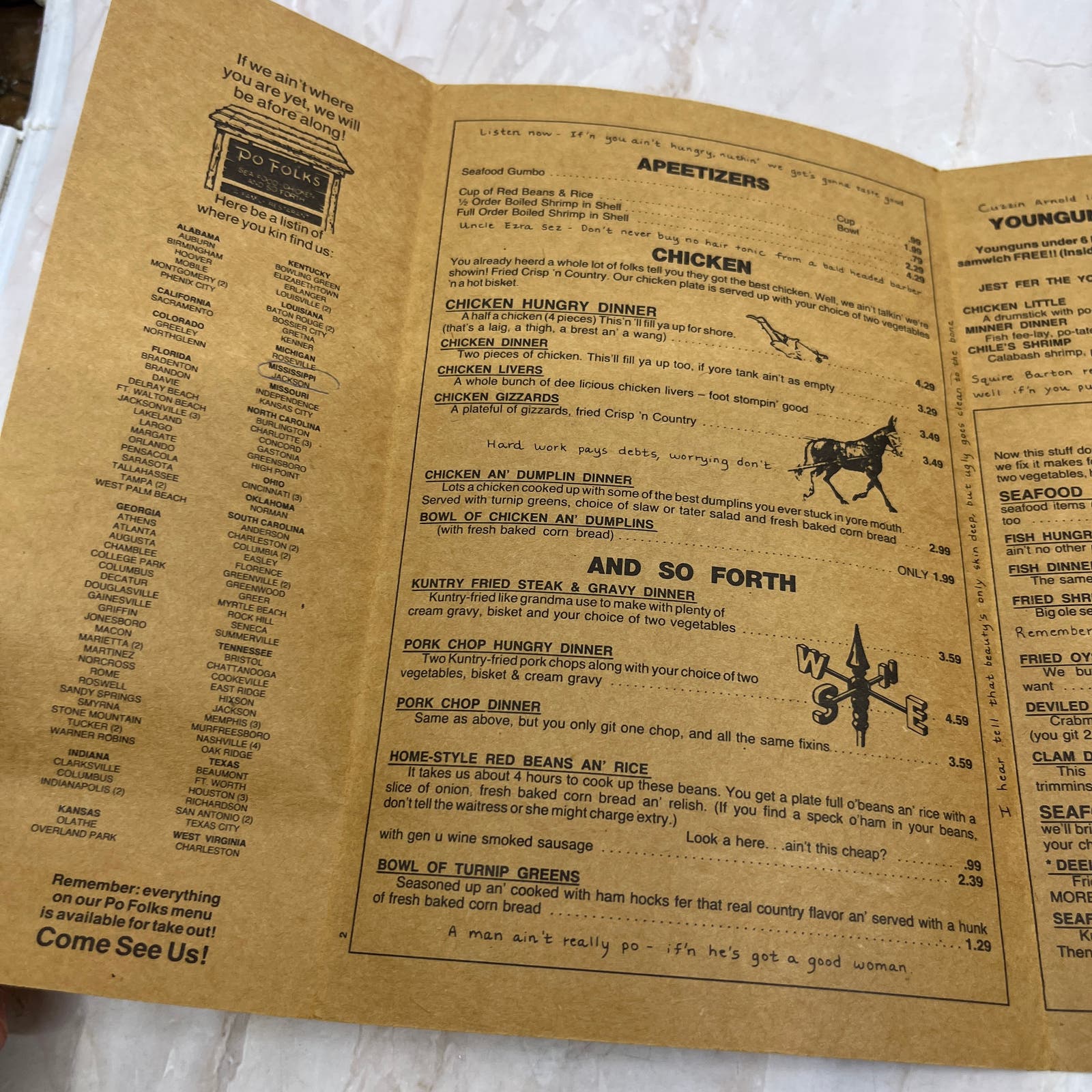 1983 Po Folks Family Restaurant Menu Jackson MS TI8-S5