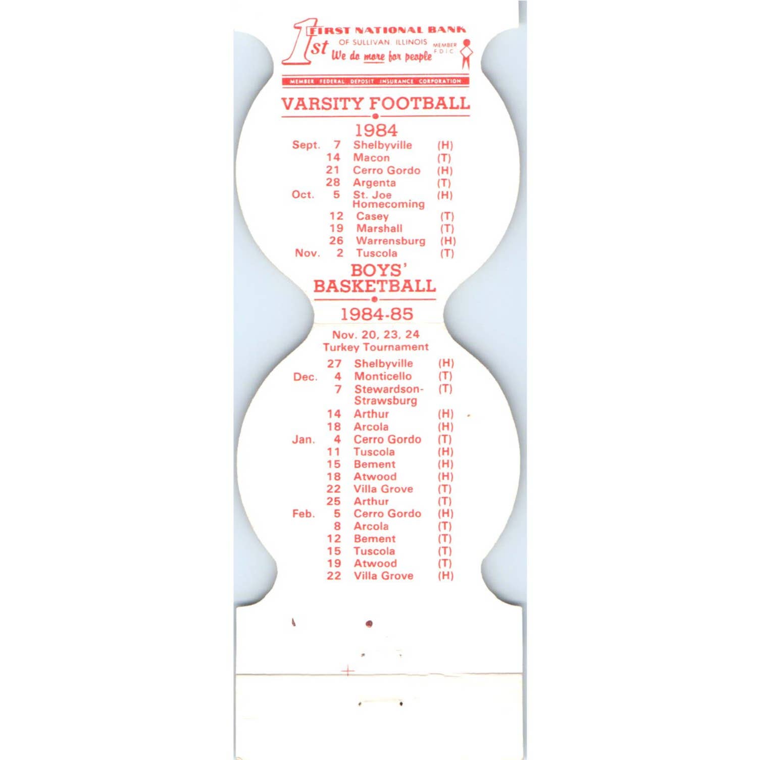 1984-85 Sullivan High School Illinois Basketball Schedule Matchbook Cover SA1-M4