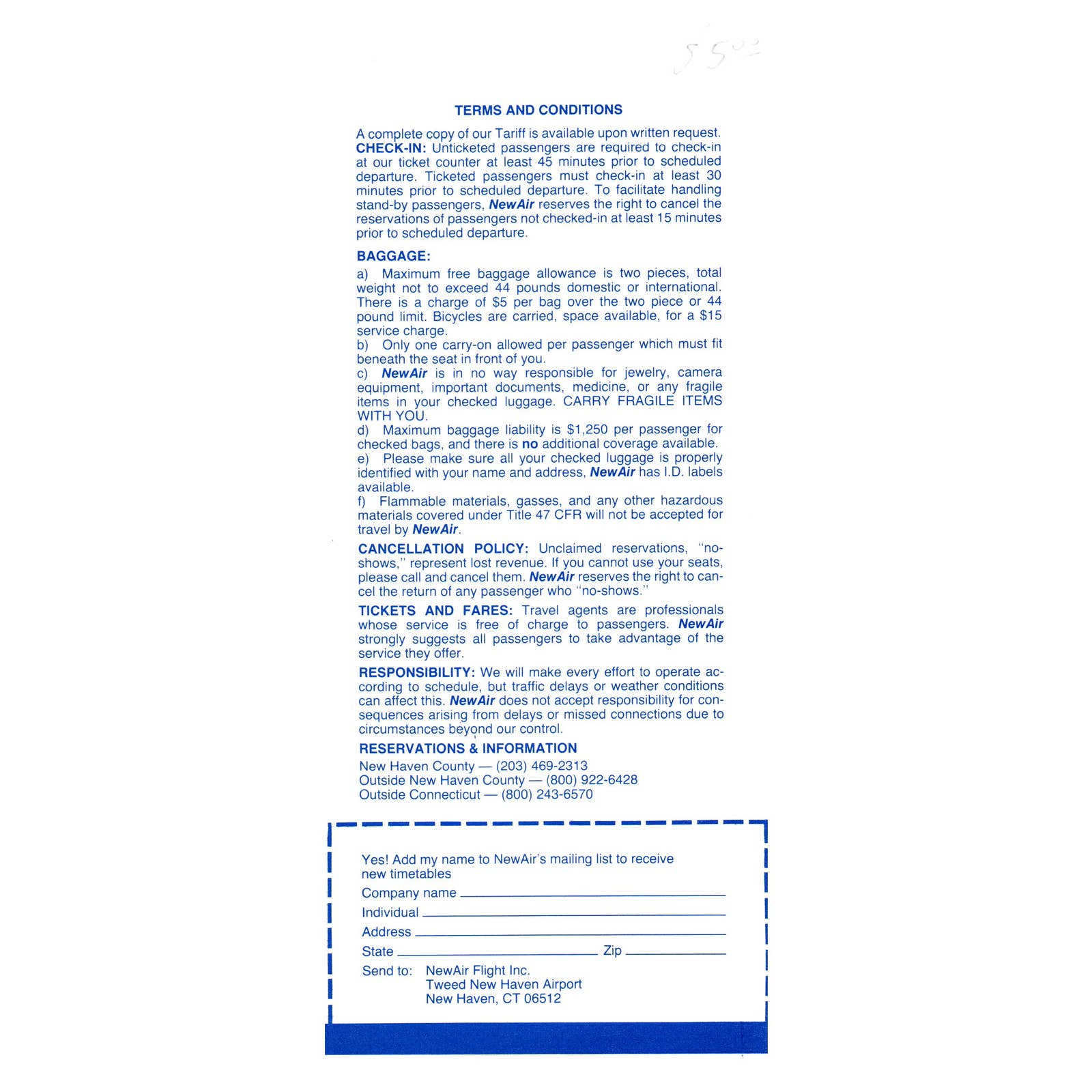 1984 New Air Airline System Timetable Atlantic City, Bridgeport Service SE4