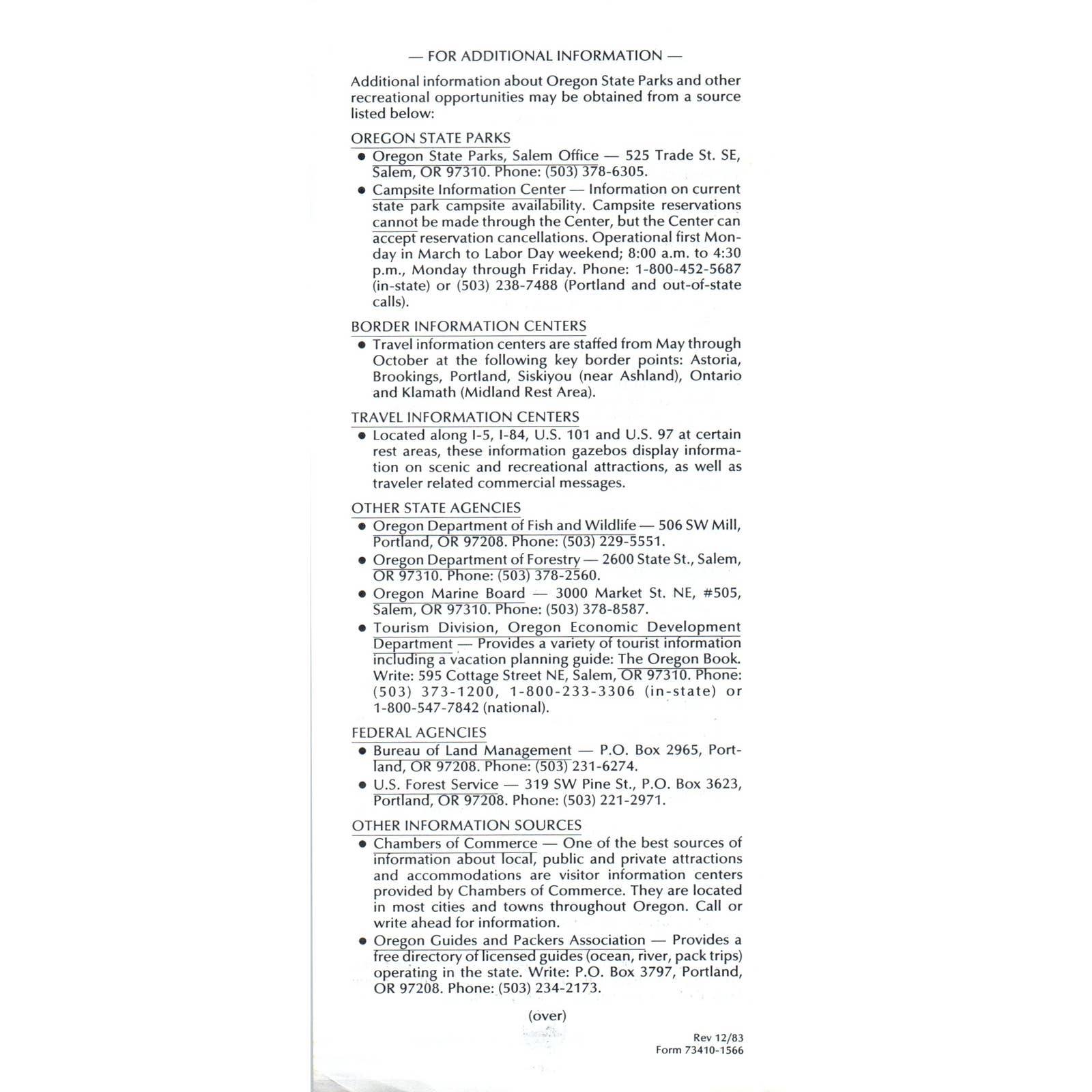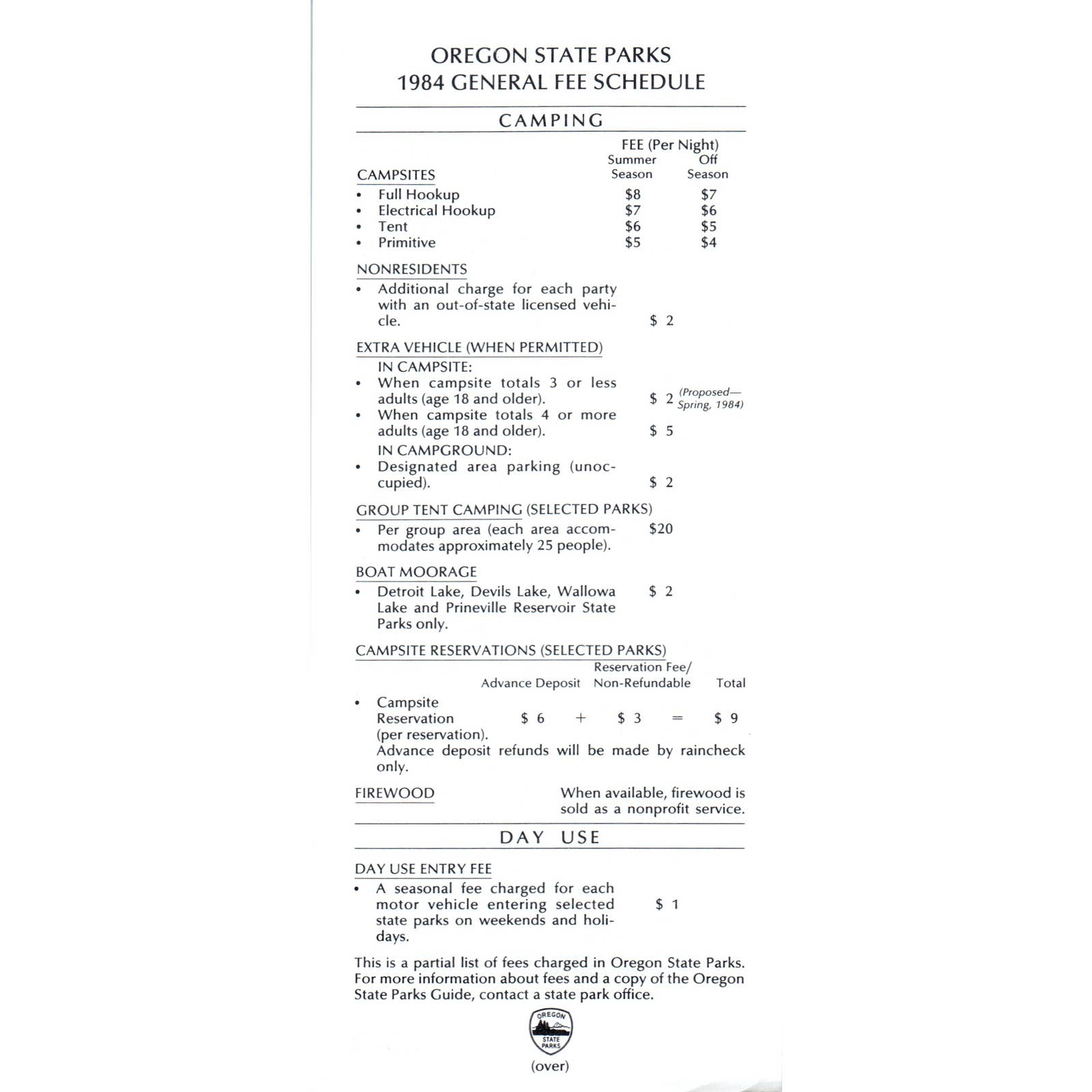 1984 Oregon State Parks General Fee Schedule Leaflet SF3