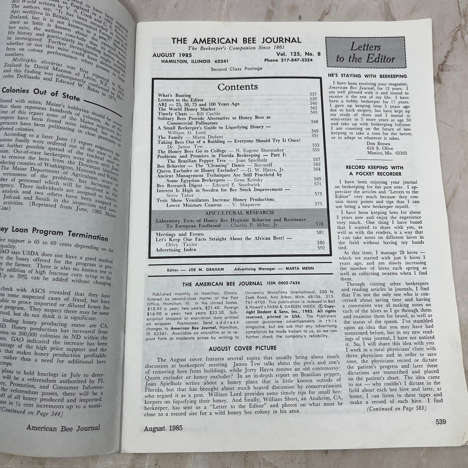 1985 August American Bee Journal Magazine Bees Beekeeping Honey M8-2