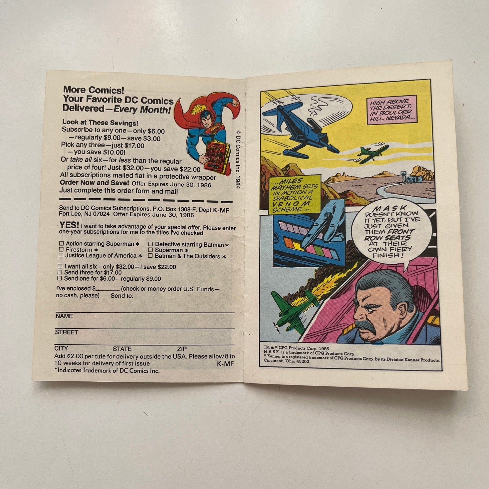 1985 M.A.S.K. Kenner Mini Comics Booklet #1 Flaming Beginnings Mask TK3-CC1
