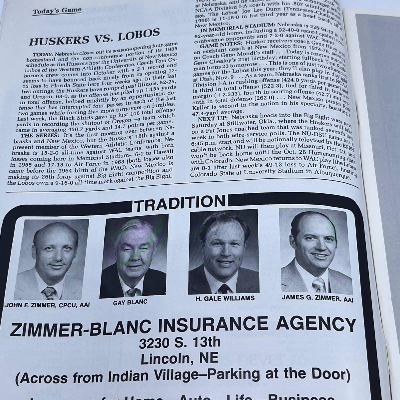 1985 Nebraska Cornhuskers vs. New Mexico Gameday Football Program TH6
