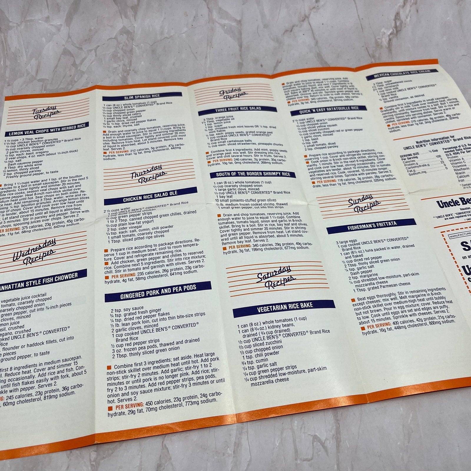 1985 Uncle Ben's 7 Day Rice Diet Recipe Guide Fold Out Pamphlet TG7-EK