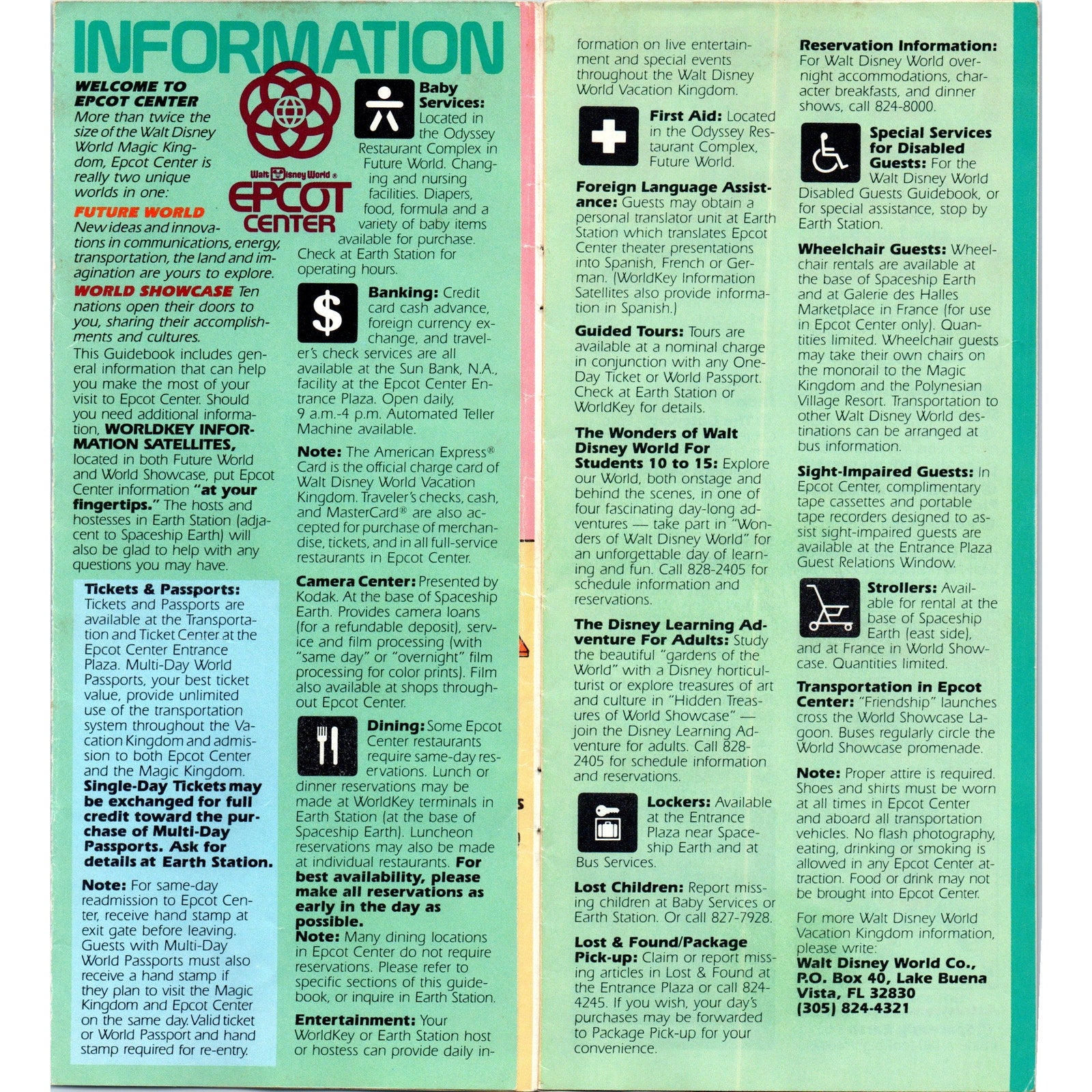 1985 Walt Disney World Epcot Center Guide Book Kodak TH2-O2