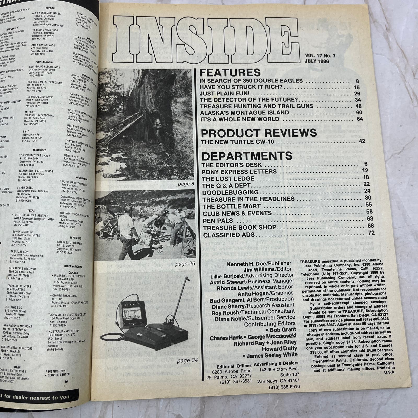 1986 July - Treasure Magazine - Treasure Hunting Metal Detecting Gold Coins M10