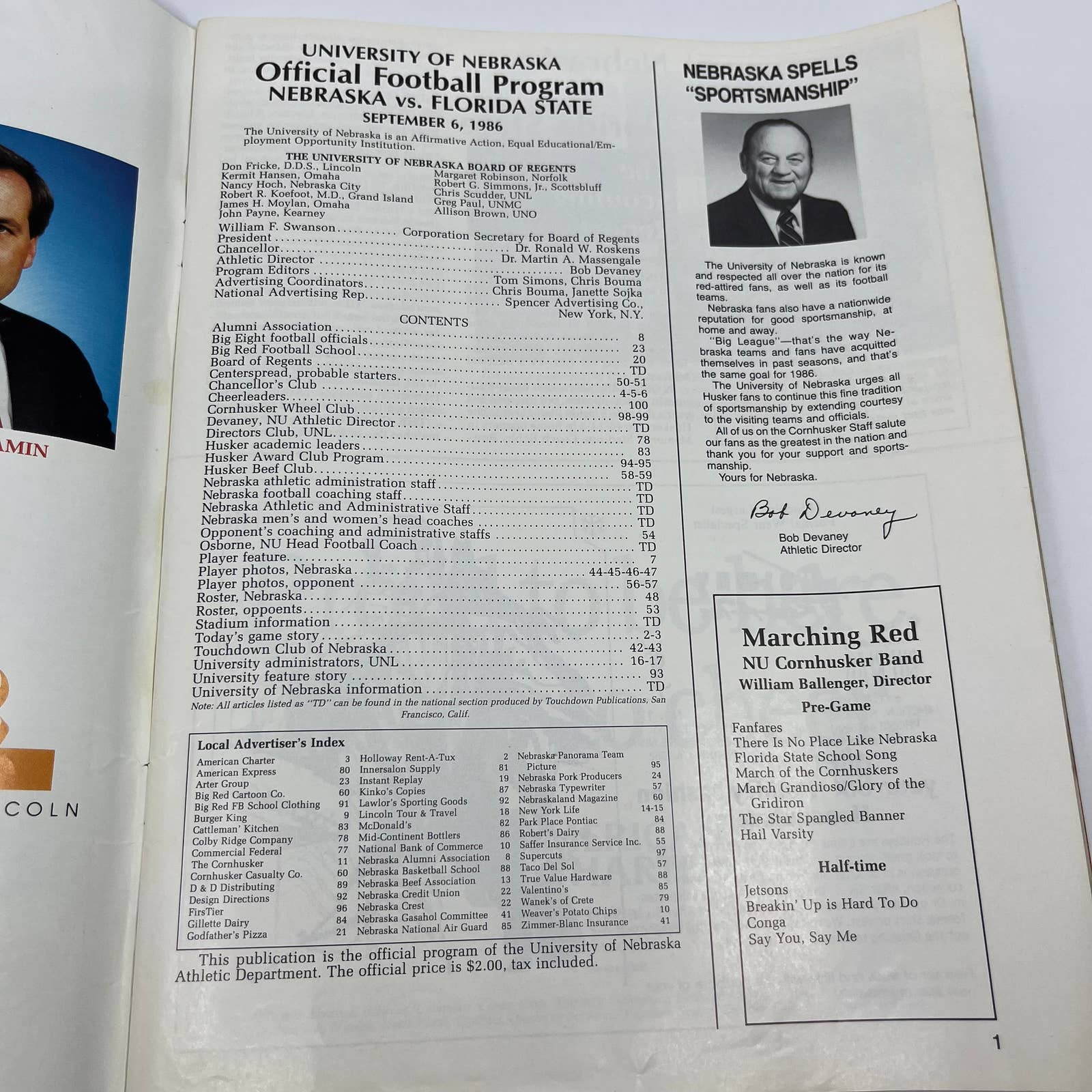 1986 Nebraska Cornhuskers vs. Florida State Gameday Football Program TH6