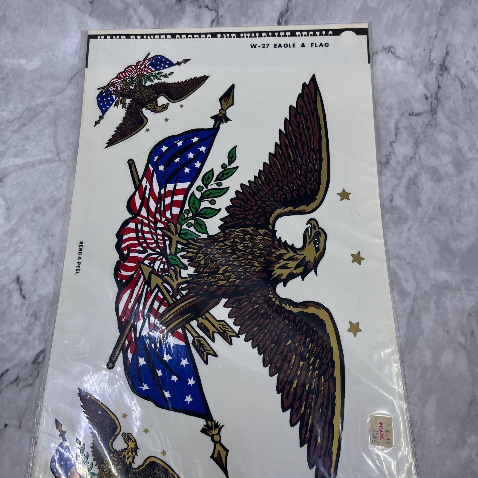 1986 NEW NOS Decorcal Sports & Wildlife Decal W-27 Eagle & Flag FL5