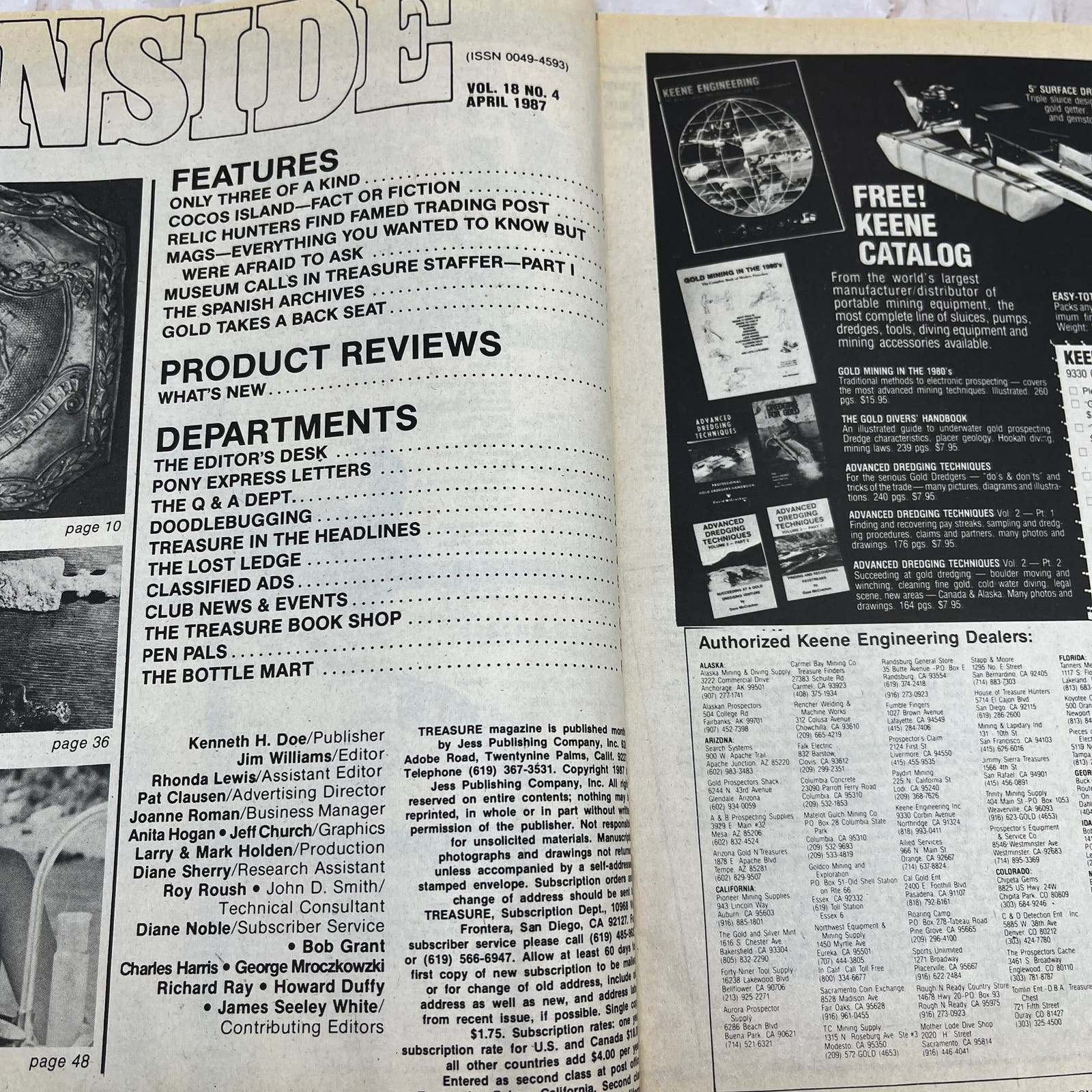 1987 April - Treasure Magazine - Treasure Hunting Metal Detecting Gold Coins M10