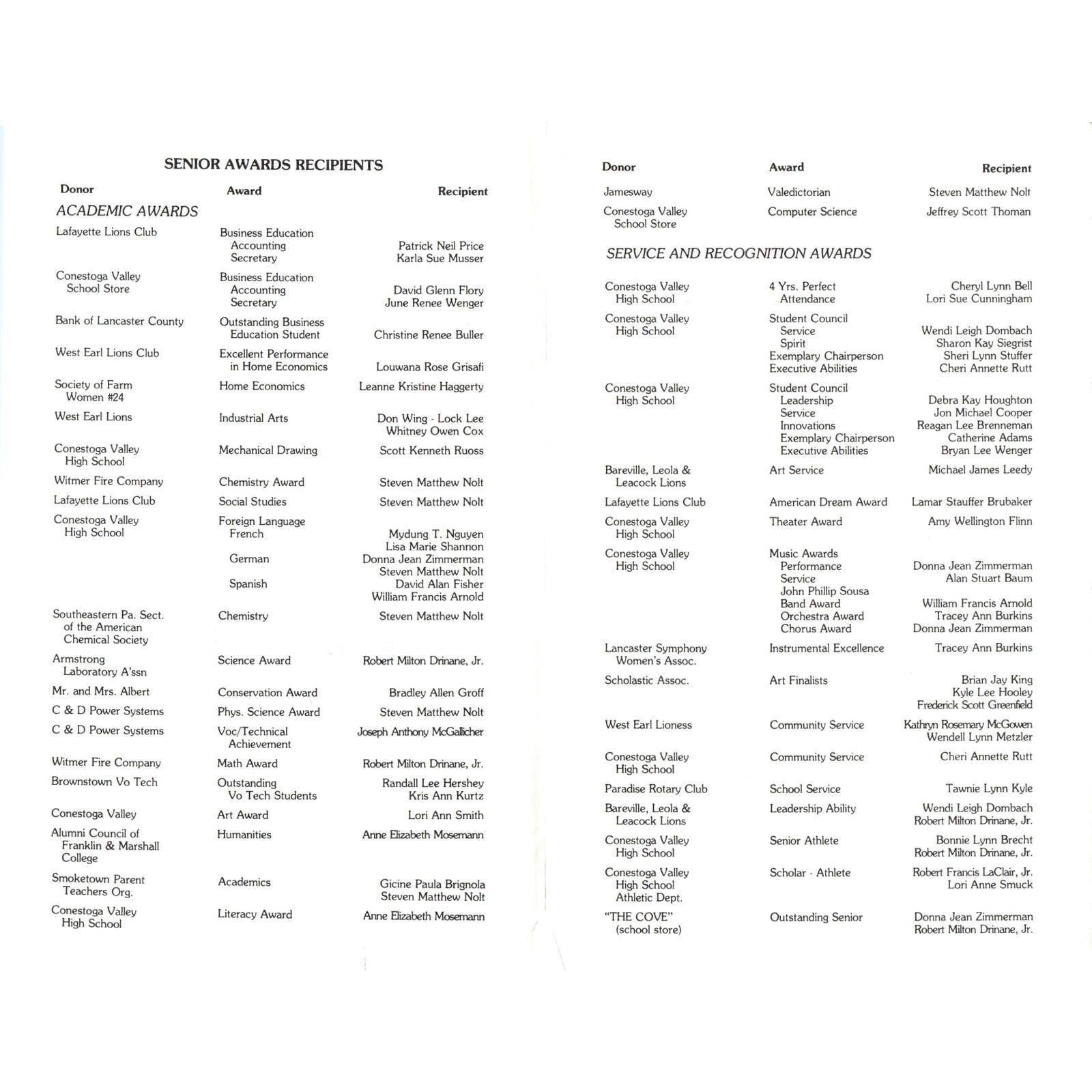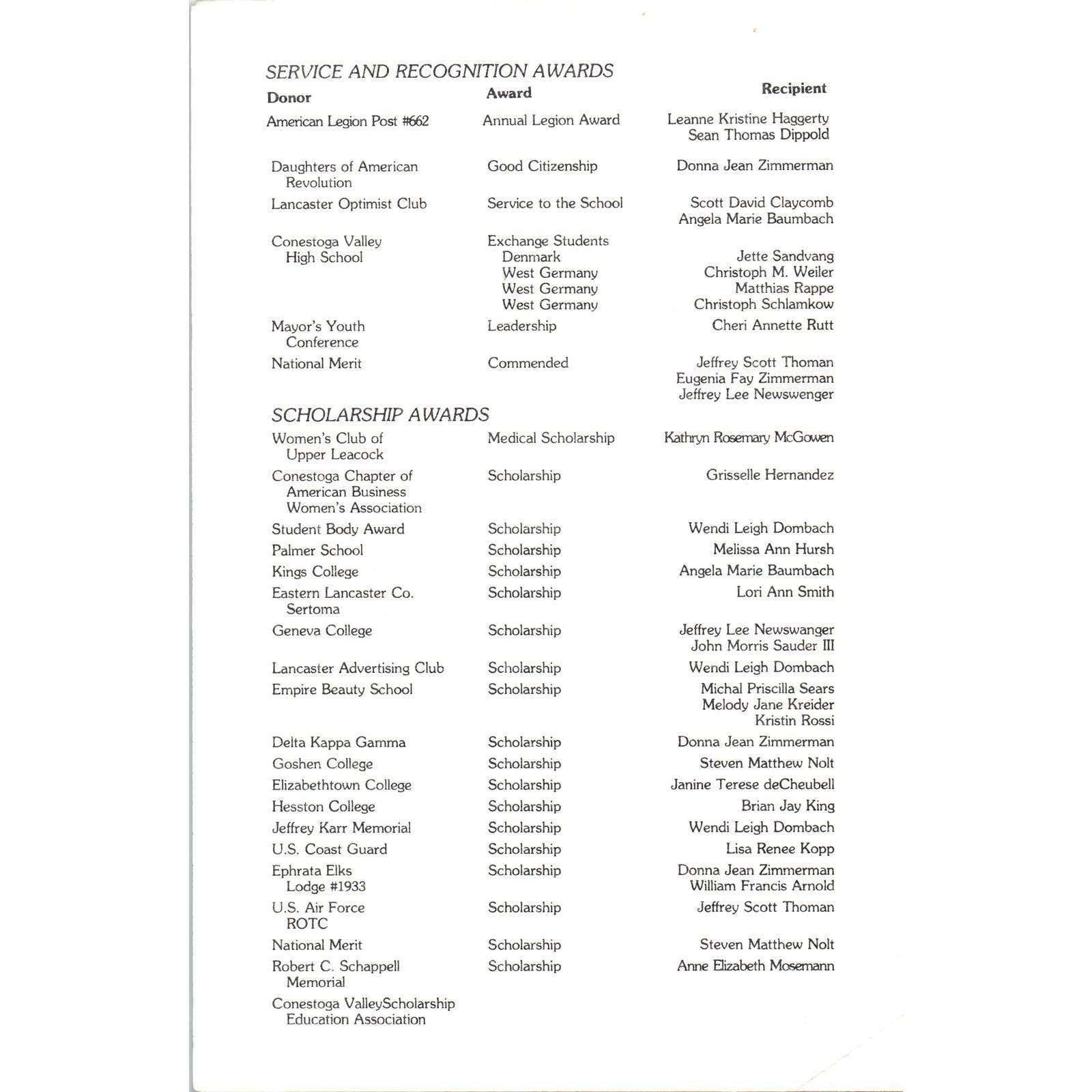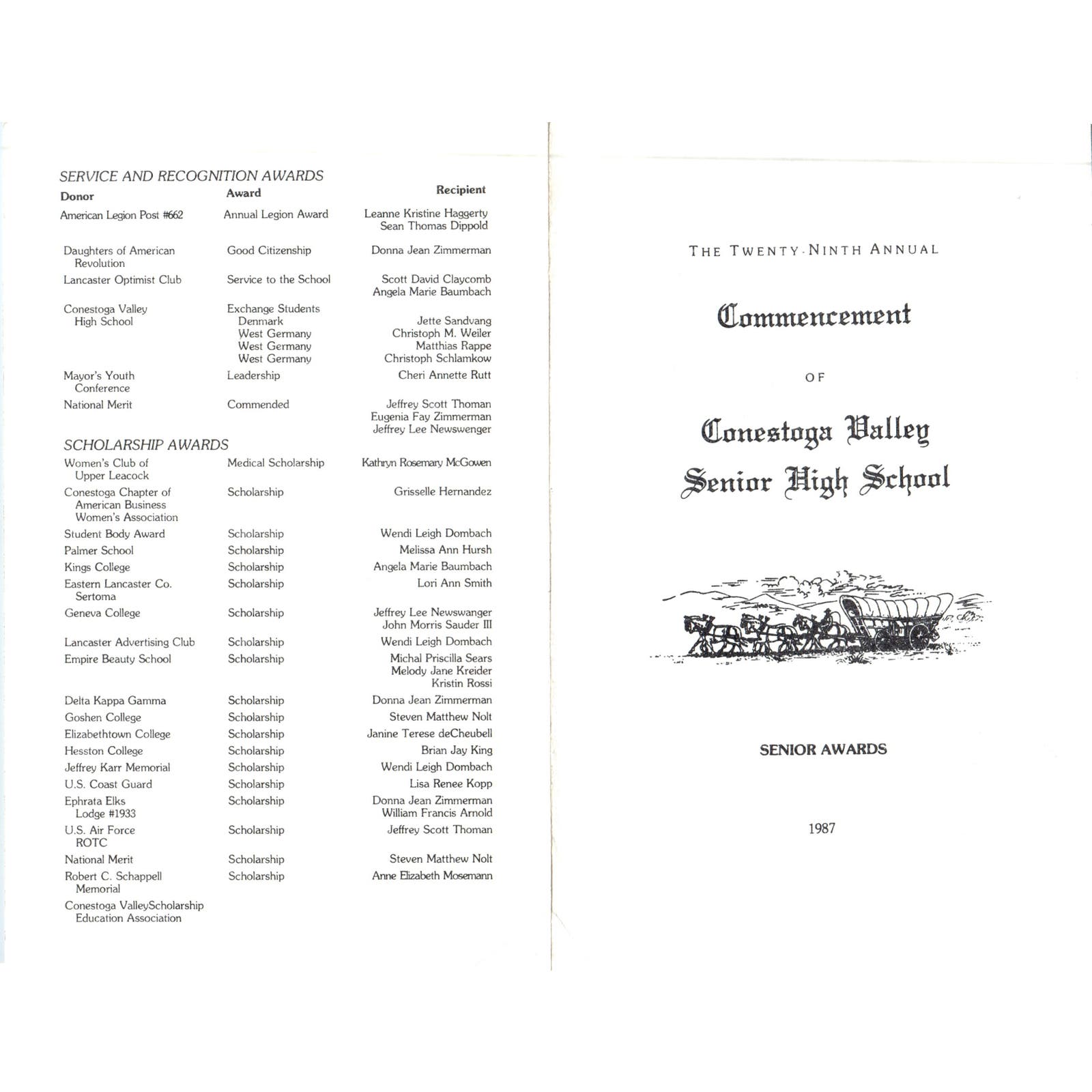 1987 Conestoga Valley High School Commencement Program Lancaster Co PA AE5