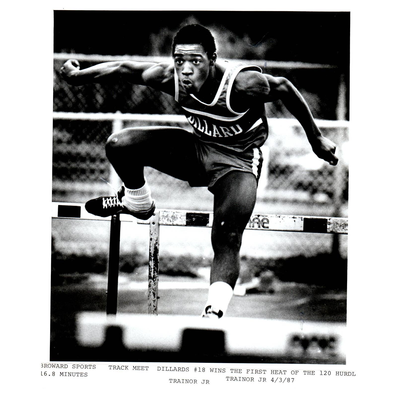 1987 Original Press Photo Track and Field Hurdles Dillard #18 Trainor Jr 8x10" AD2