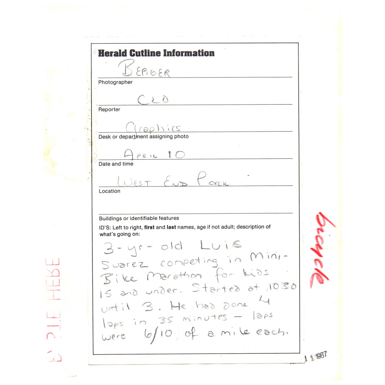 1987 Press Photo Luis Suarez Mini Bike Marathon West End Park Miami FL 8x10" AD3