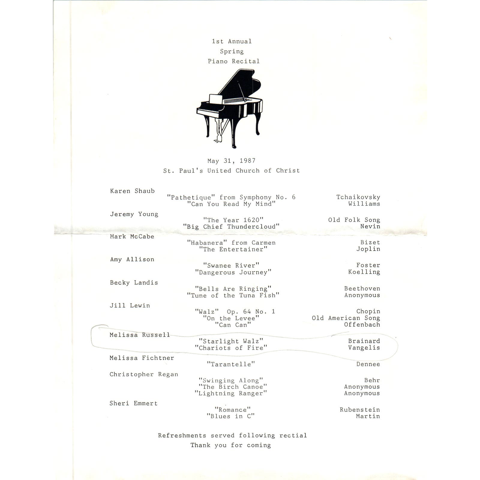 1987 St. Paul's United Church of Christ Piano Recital Program Millersville PA AE5