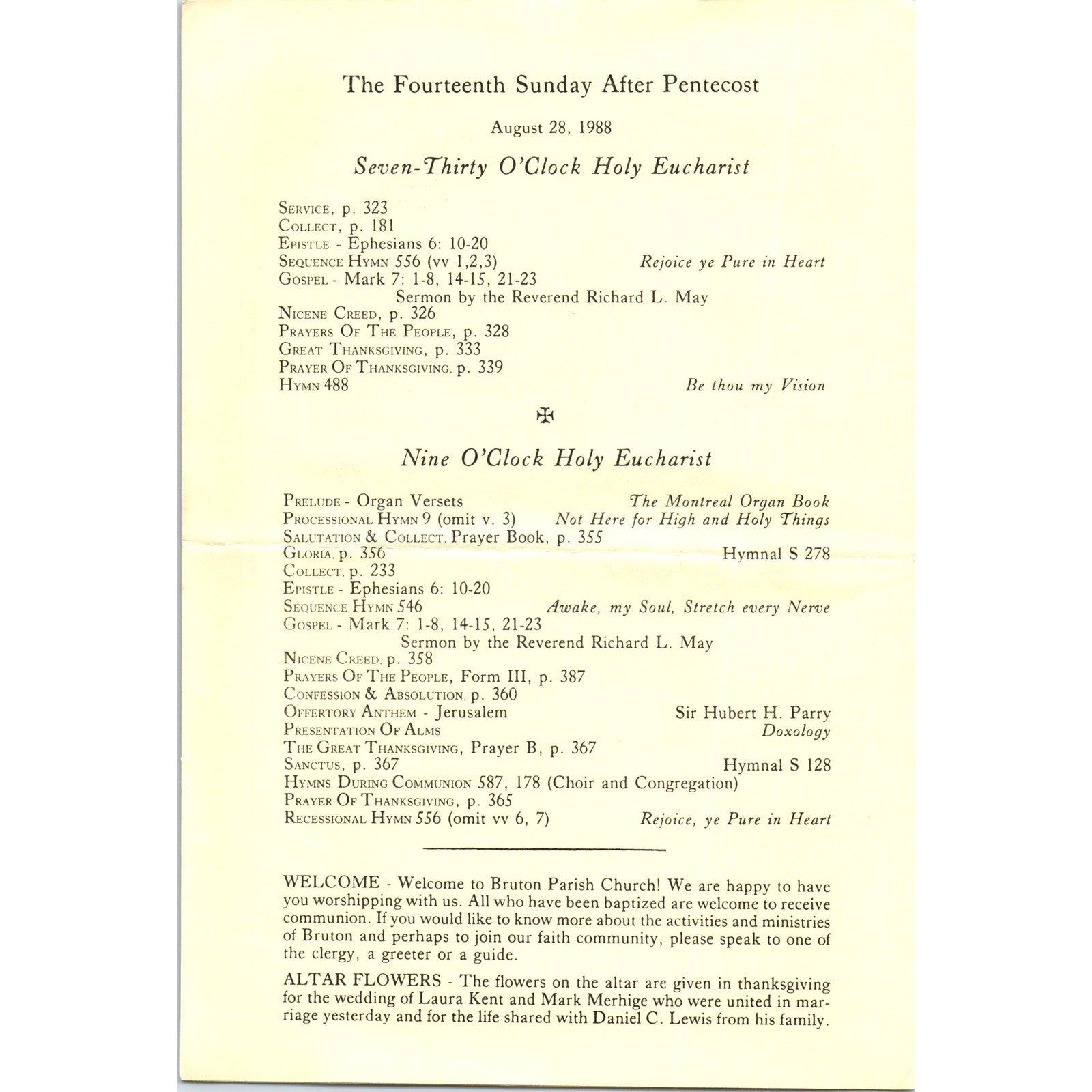 1988 Bruton Parish Church VA 14th Sunday After Pentecost Program AD8-R7