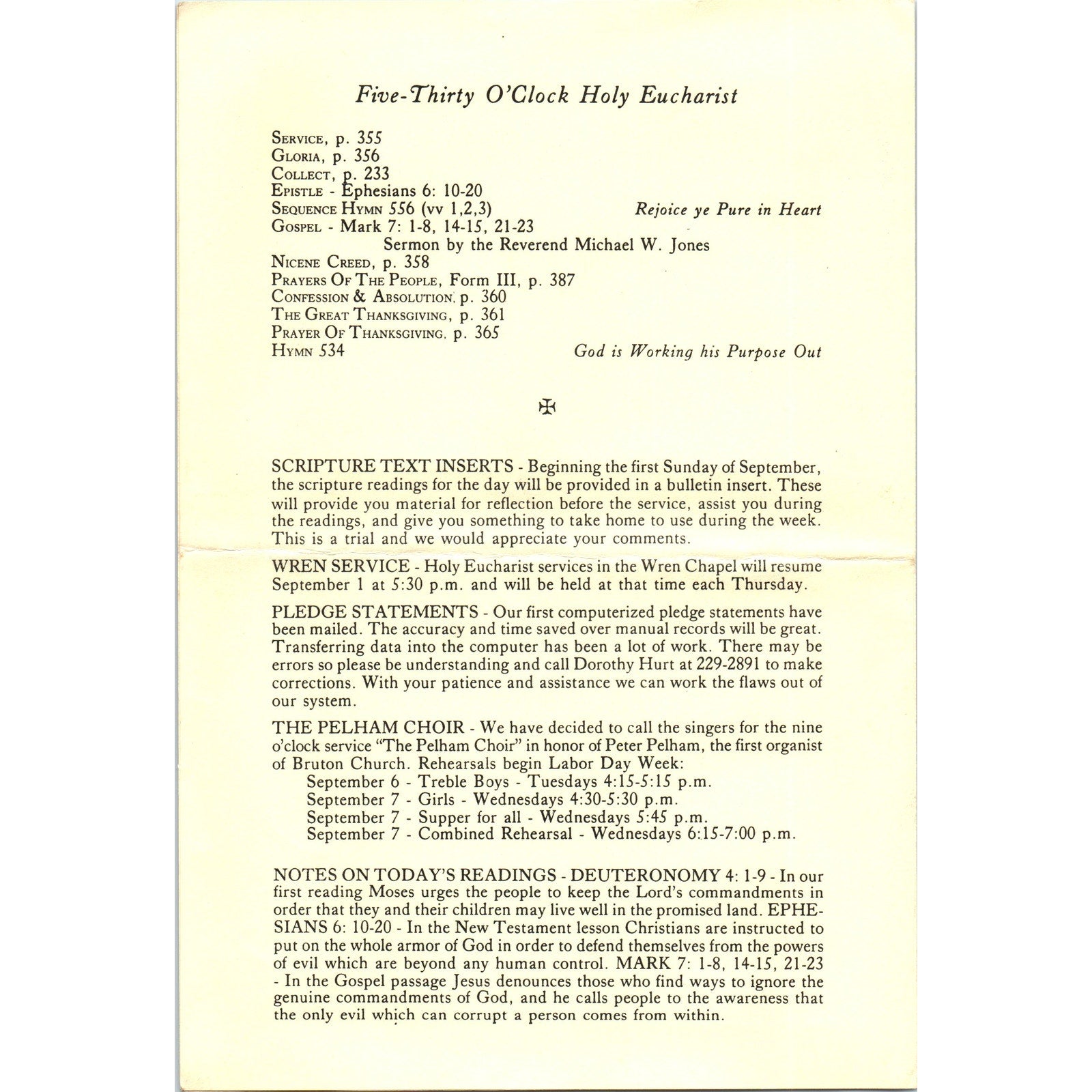 1988 Bruton Parish Church Williamsburg VA Fourteenth Sunday After Pentecost Program AD8-R7