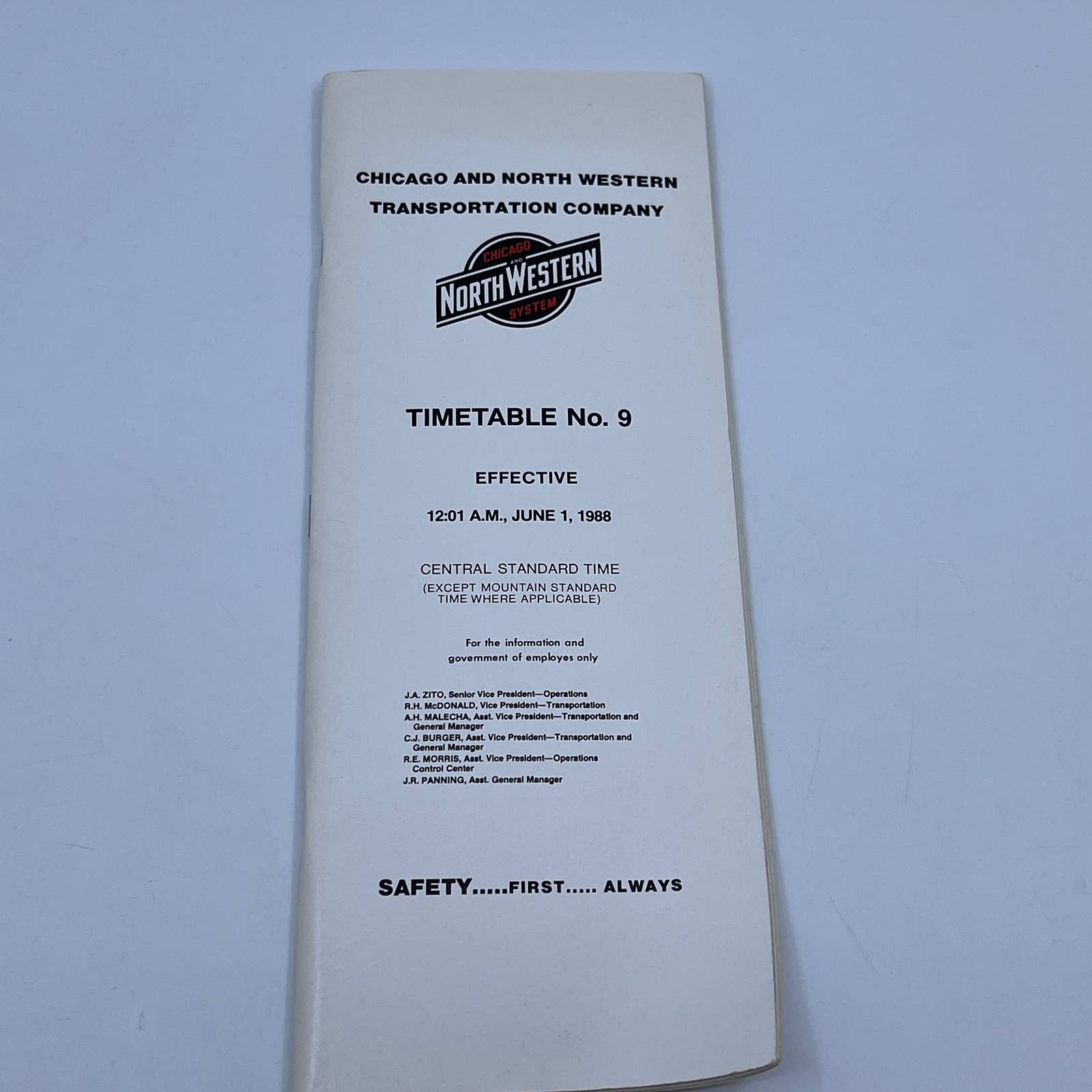 1988 Chicago & Northwestern Railroad Employee Timetable No. 9 TG6