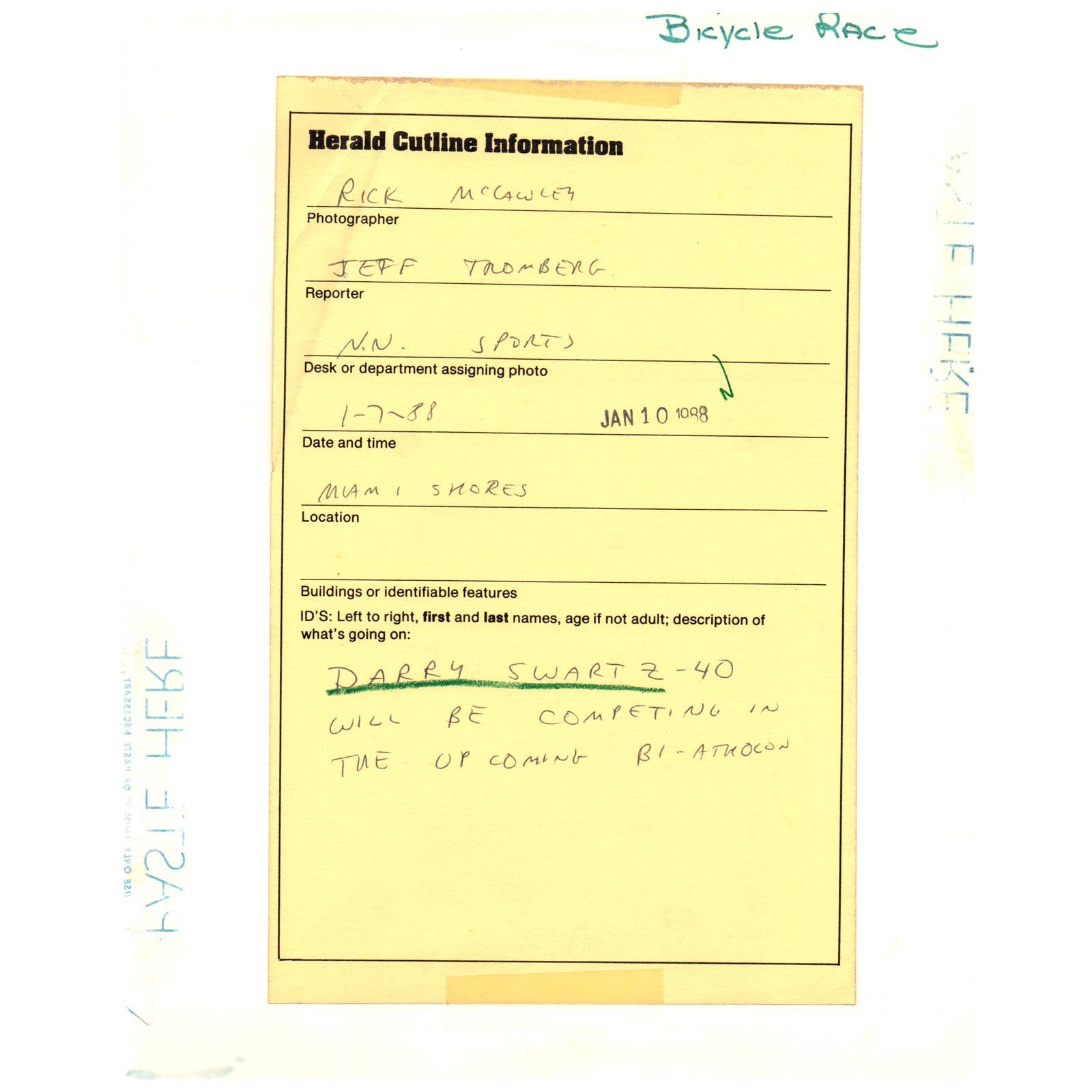 1988 Press Photo Cycling Darry Swartz Trains for Biathlon Miami Shores 8x10" AD3