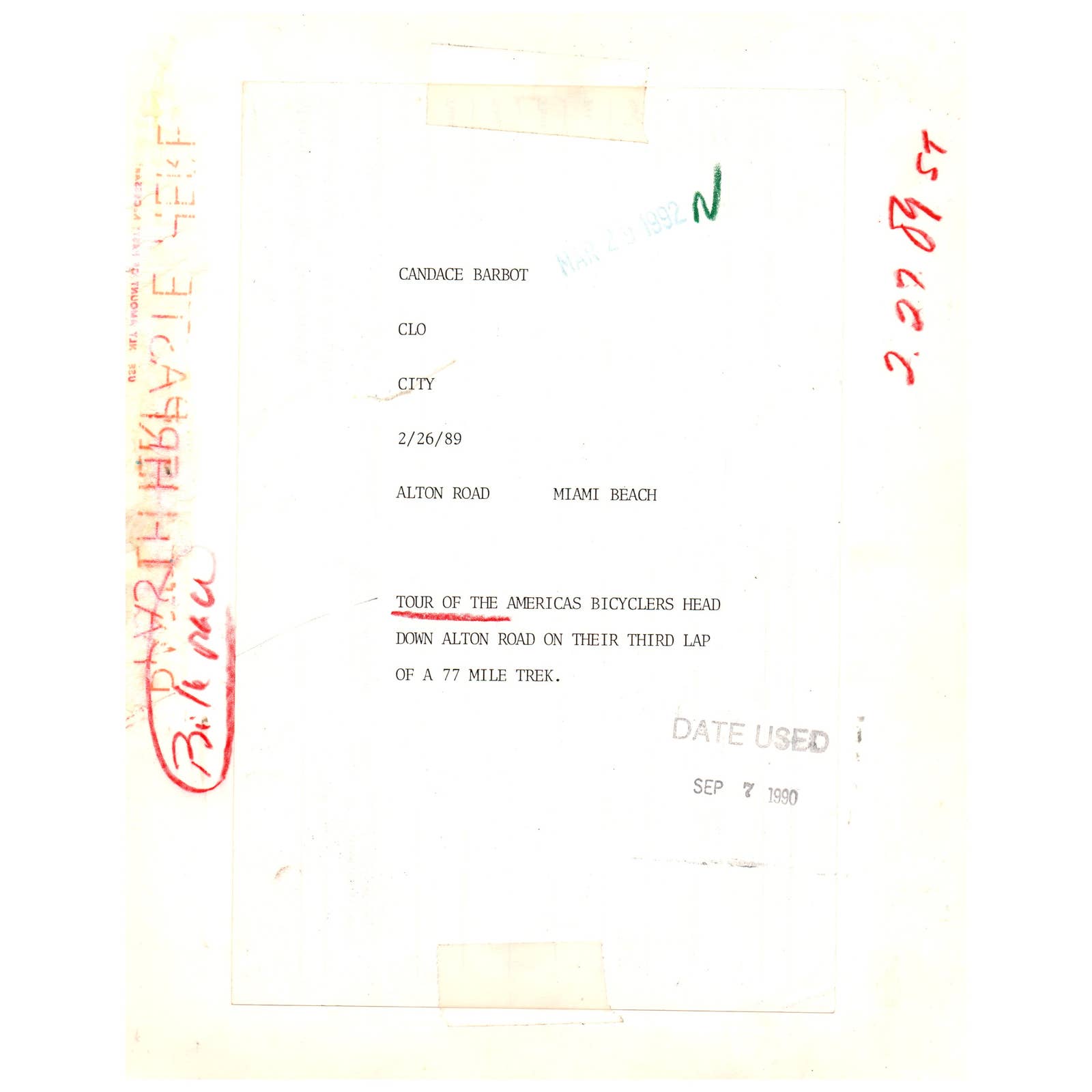 1989 Press Photo Cycling Tour of the Americas Alton Rd Miami Beach 8x10" AD3