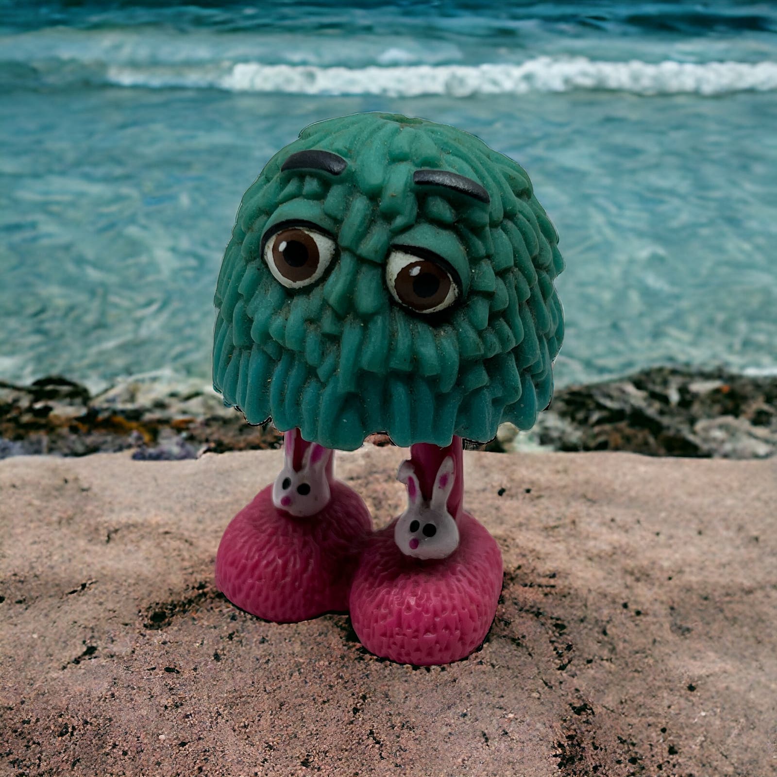 1989 Vintage 1989 McDonald's Fry Guy Blue Teal with Pink Bunny Slippers TE5-S2