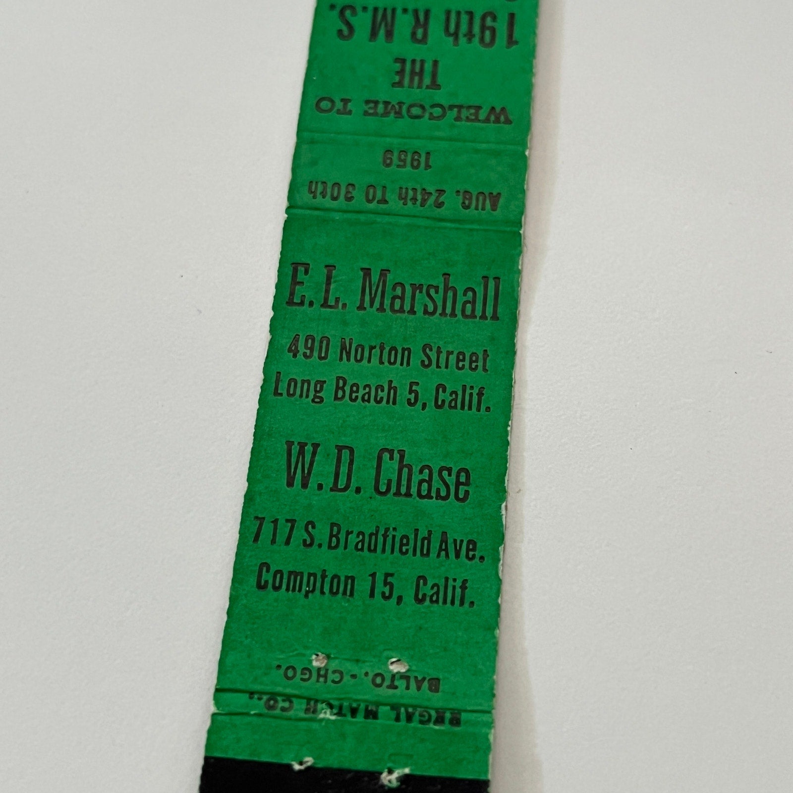 19th RMS Convention E.L. Marshall W.D. Chase Miami Beach FL Vintage Matchbook Cover TB6-MB1-14
