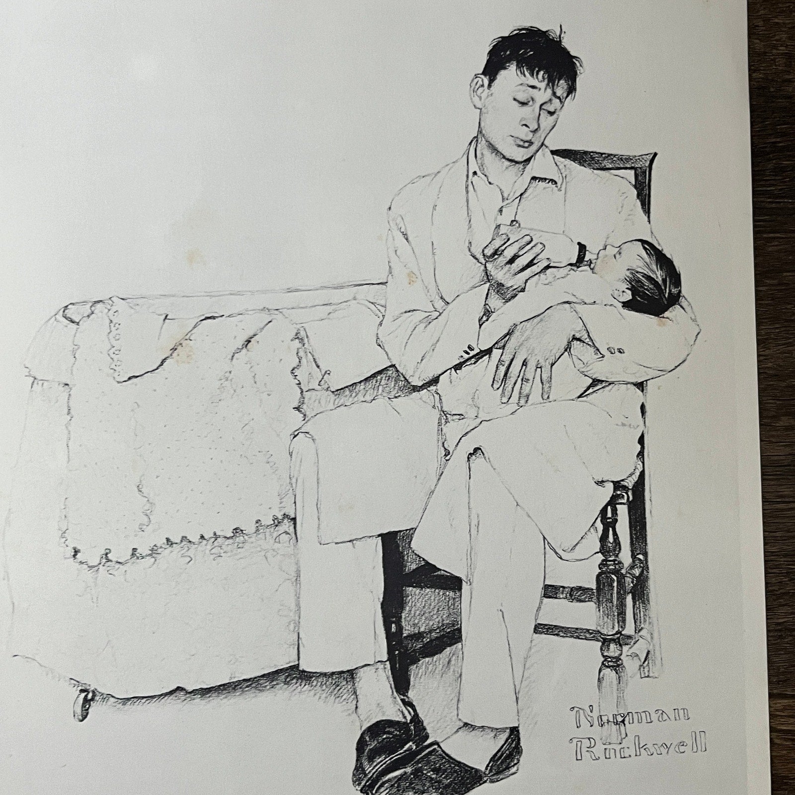 2 O'Clock Feeding - Dad Feeding Baby Norman Rockwell Lithograph Art Print 11x14 V8