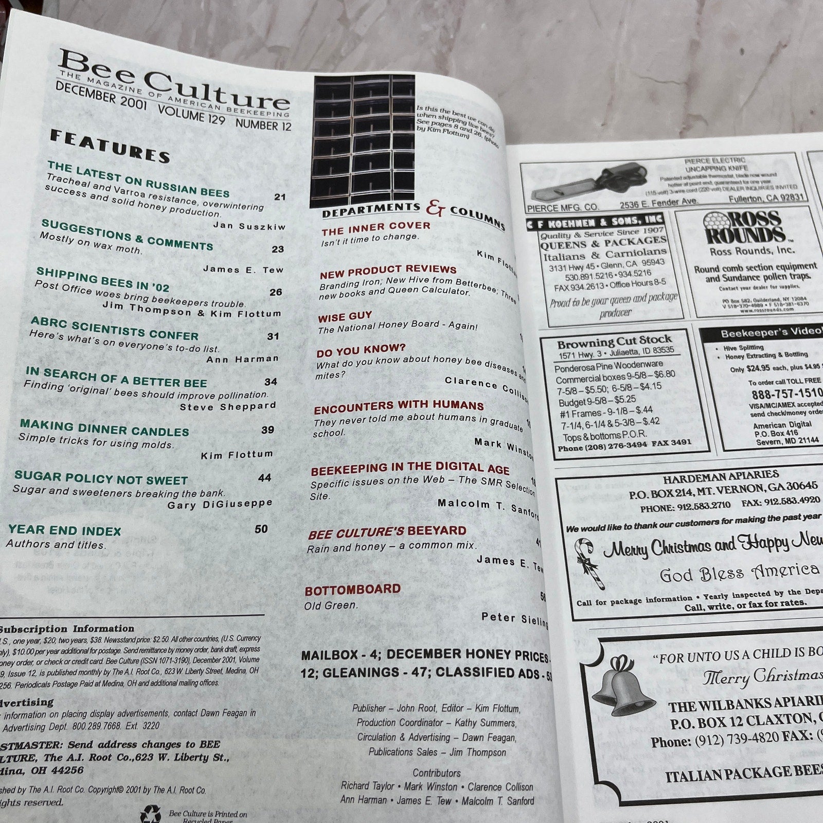 2001 Dec - Bee Culture Magazine - Bees Beekeeping Honey M32
