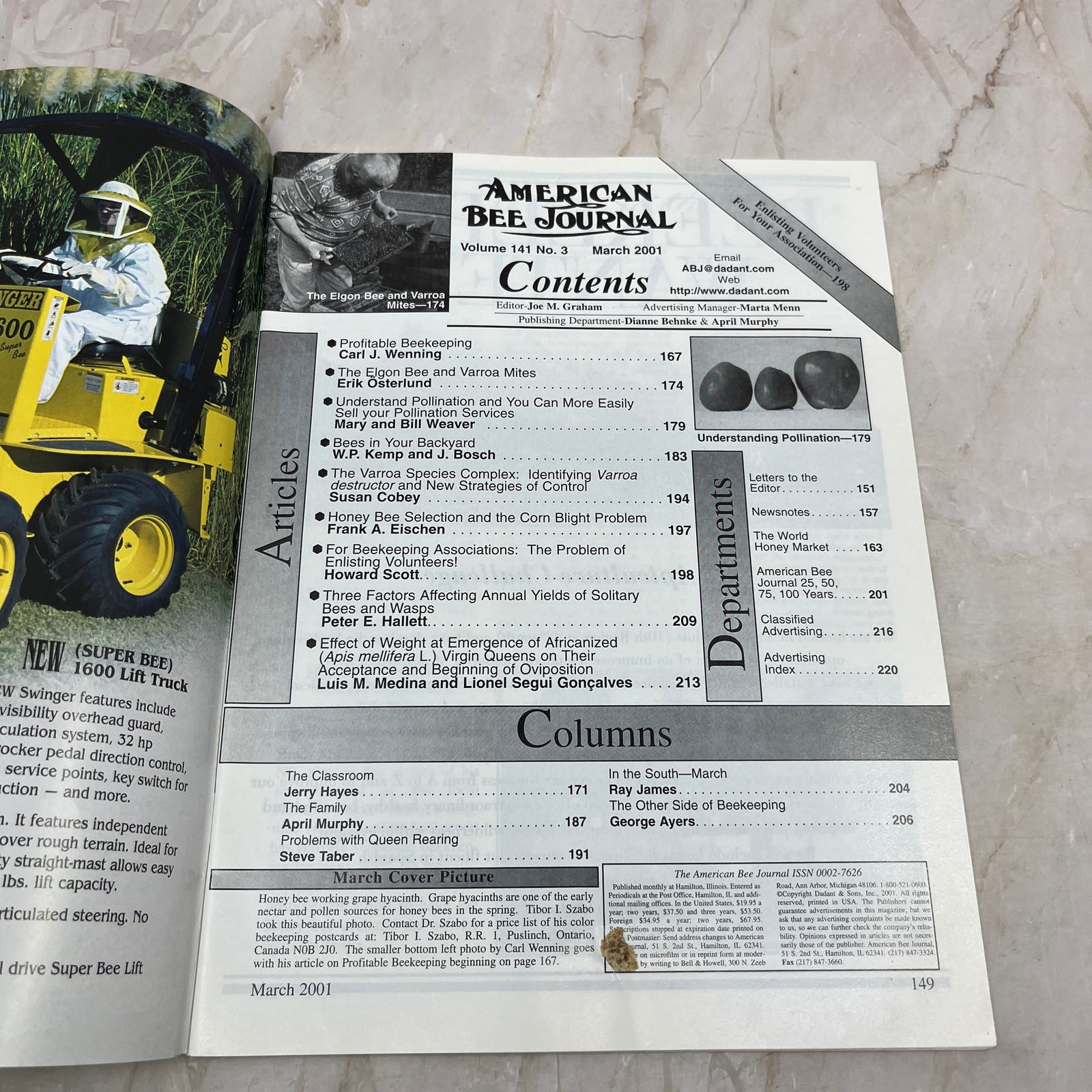 2001 March American Bee Journal Magazine Bees Beekeeping Honey M7
