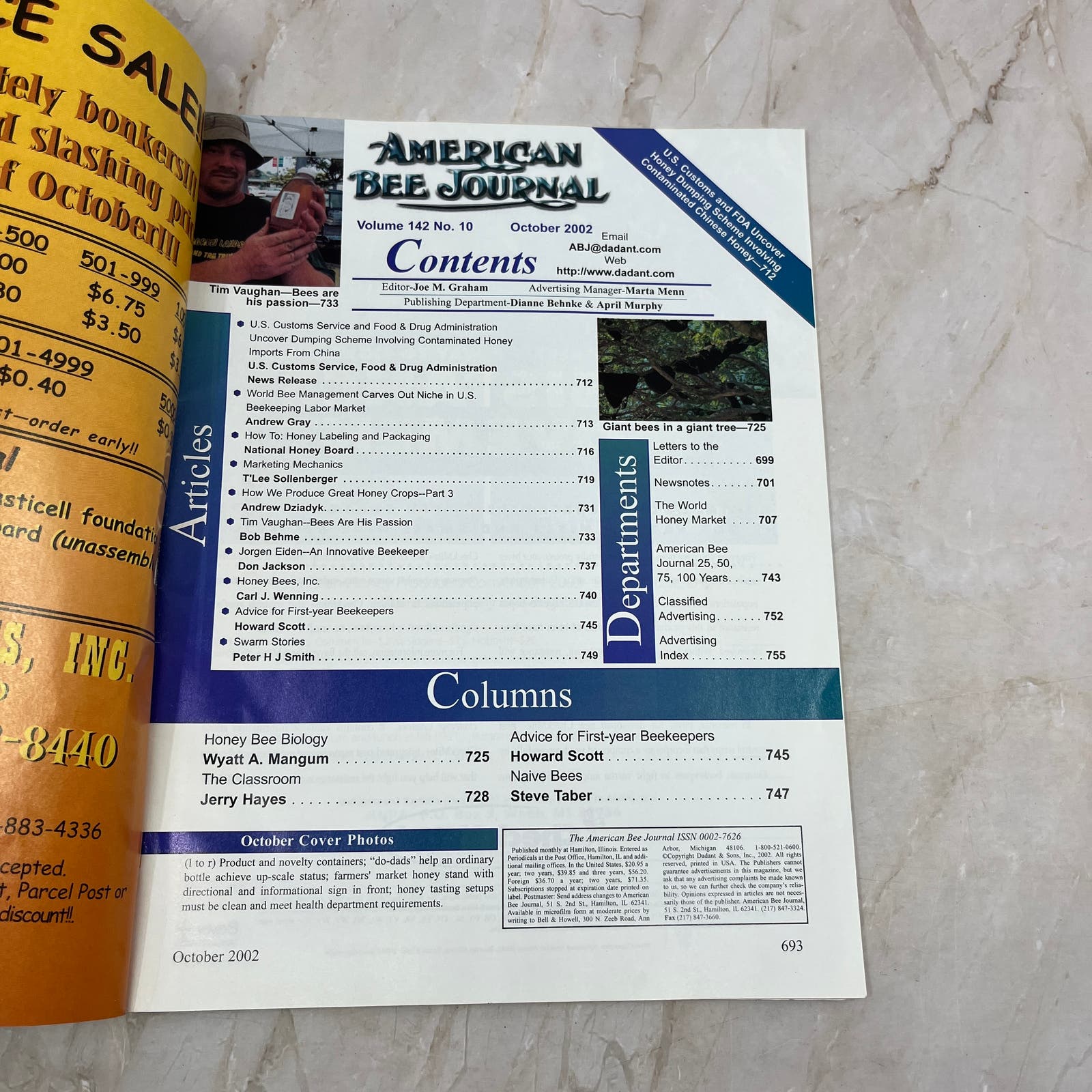 2002 Oct American Bee Journal Magazine Bees Beekeeping Honey M7