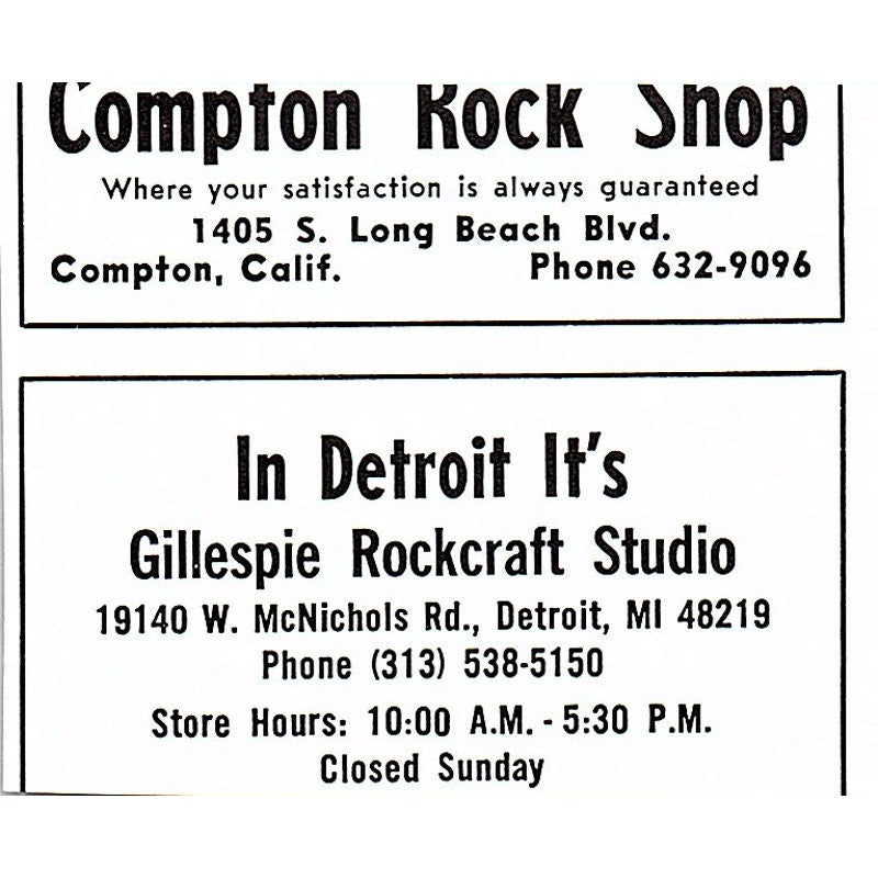 Measures approx 2x2.5". This is a SMALL Ad, size is approximate. Original piece taken from a 1972 Lapidary Journal magazine. Has regular wear and tear you would expect from a piece this age. See pics for condition.