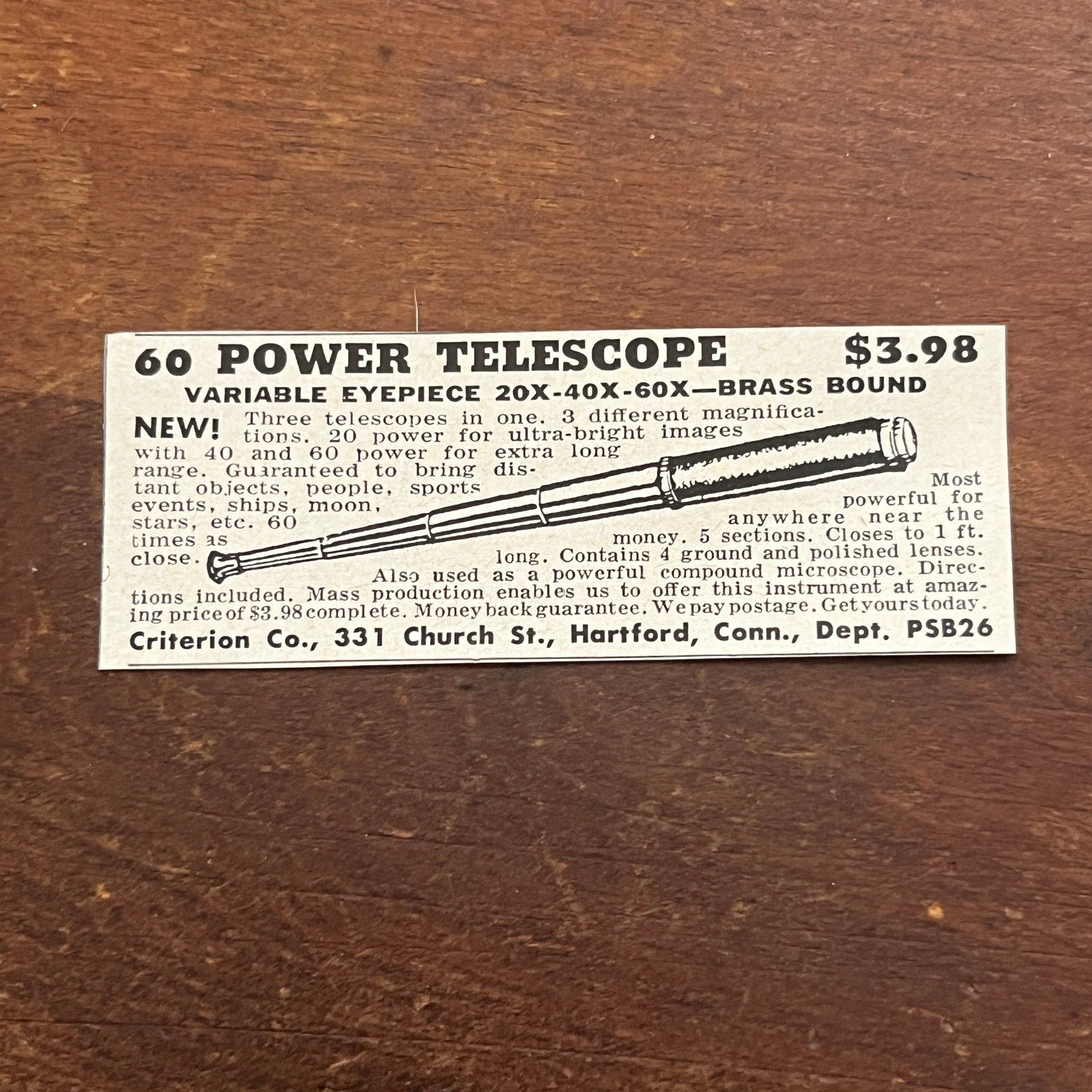 60 Power Telescope Criterion Co Hartford CT 1955 Ad AF9-S1