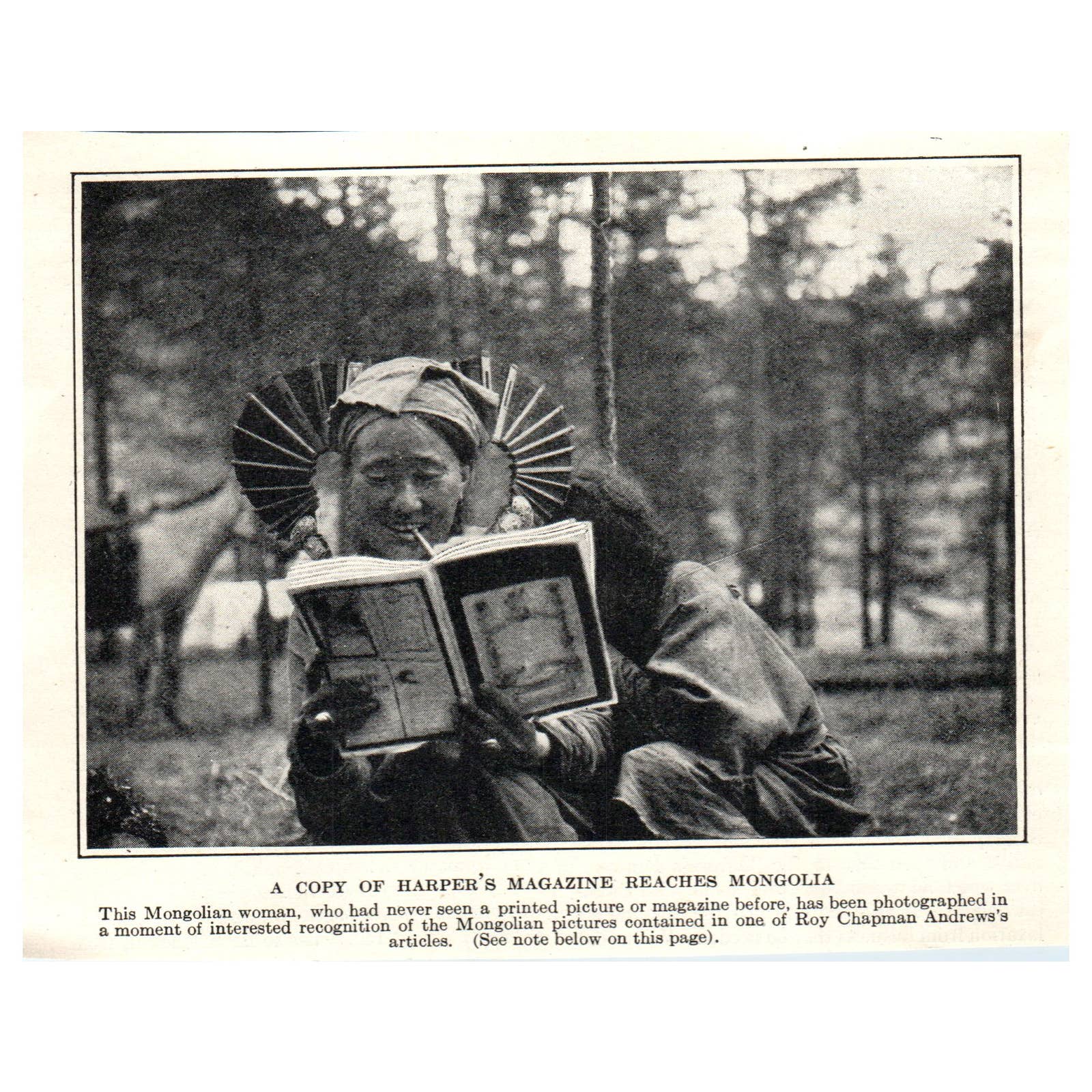 A Copy of Harper's Magazine Reaches Mongolia - 1921 Original Photograph TJ7-S