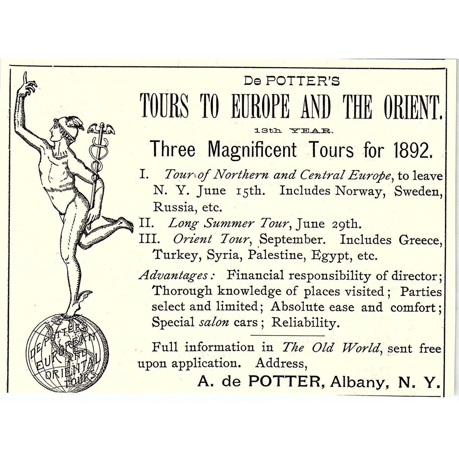 A. De Potter Tours to Europe and the Orient Albany NY 1892 Ad AG2-H6