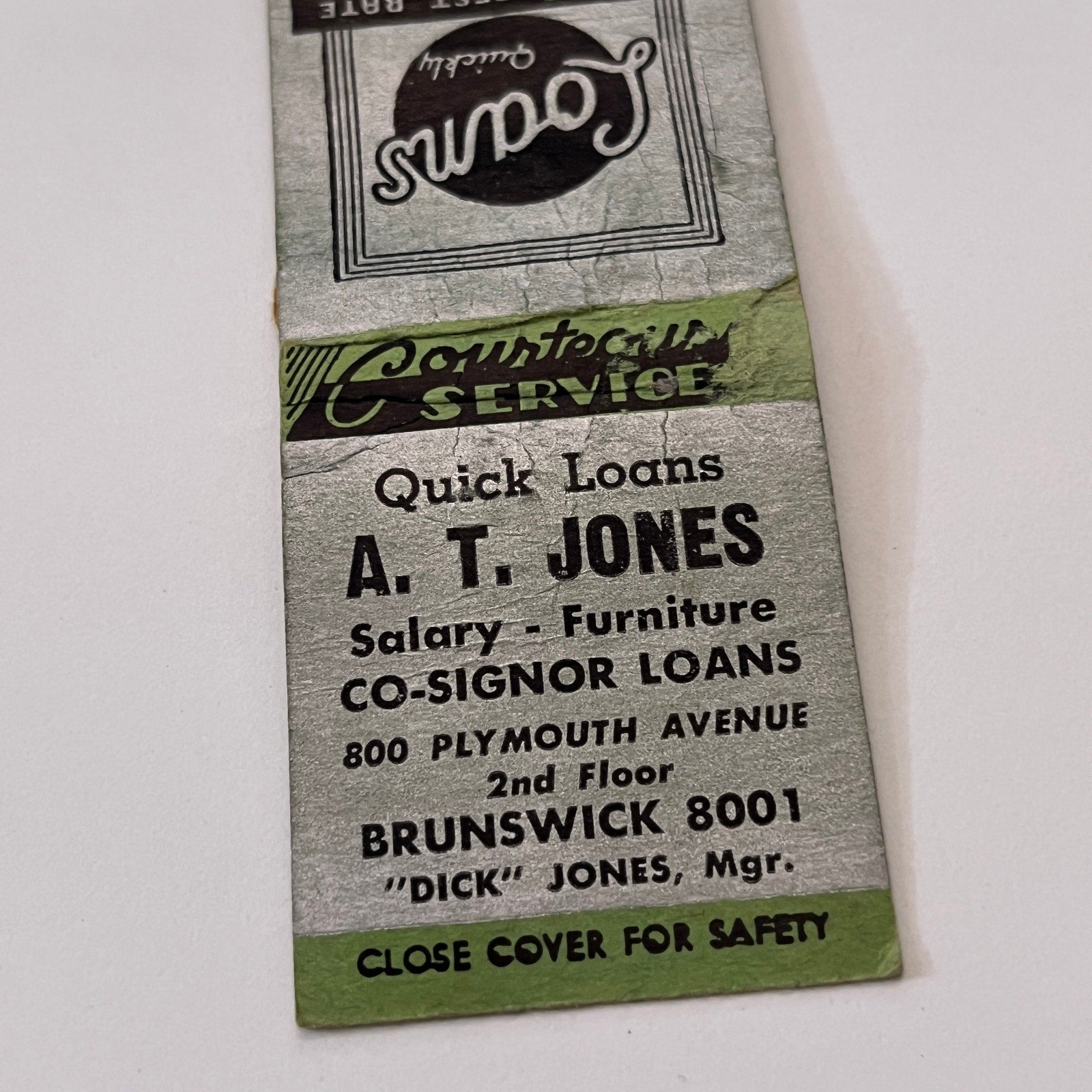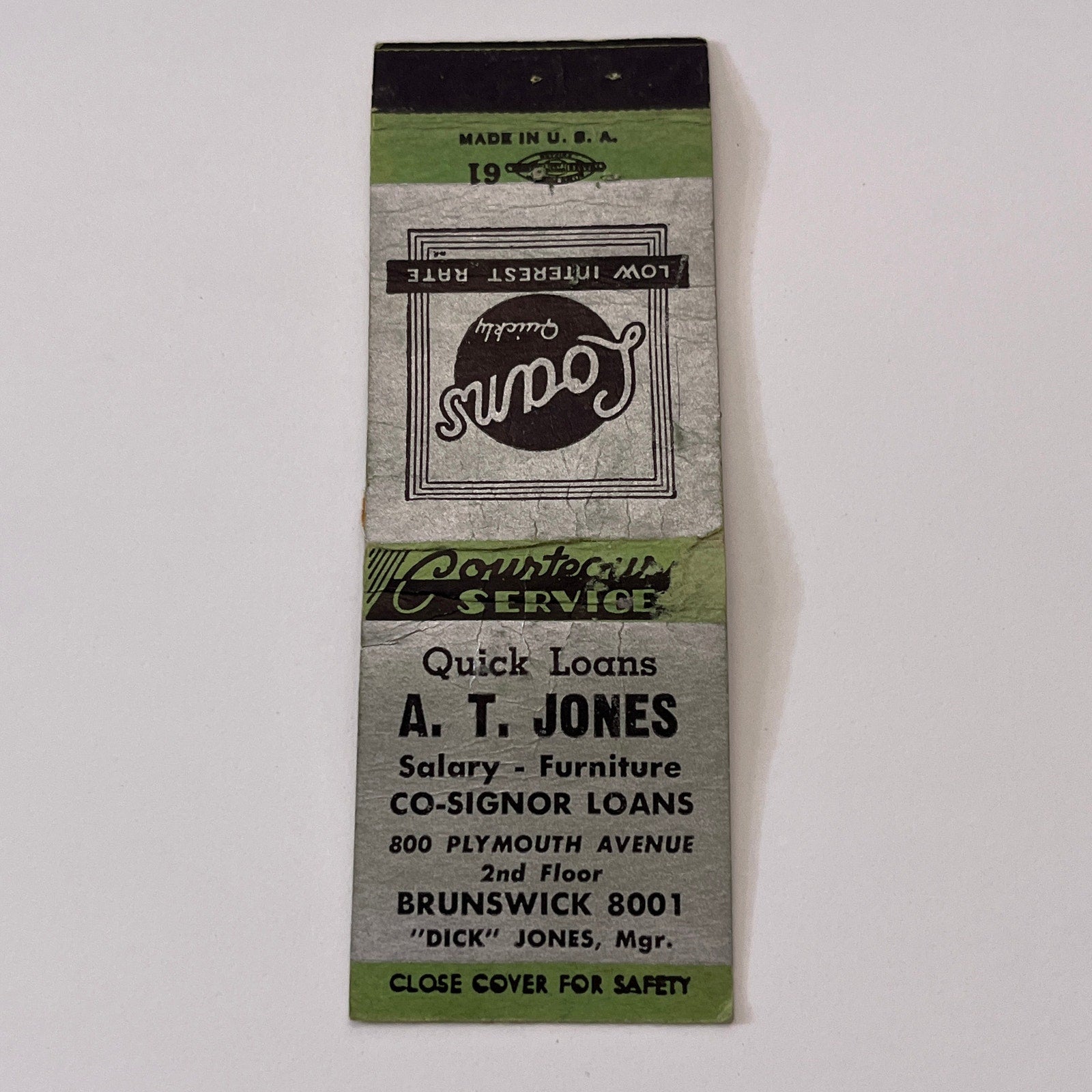 A.T. Jones Co-Signor Dick Jones 800 Plymouth Ave Vintage Matchbook Cover TB6-MB1-15