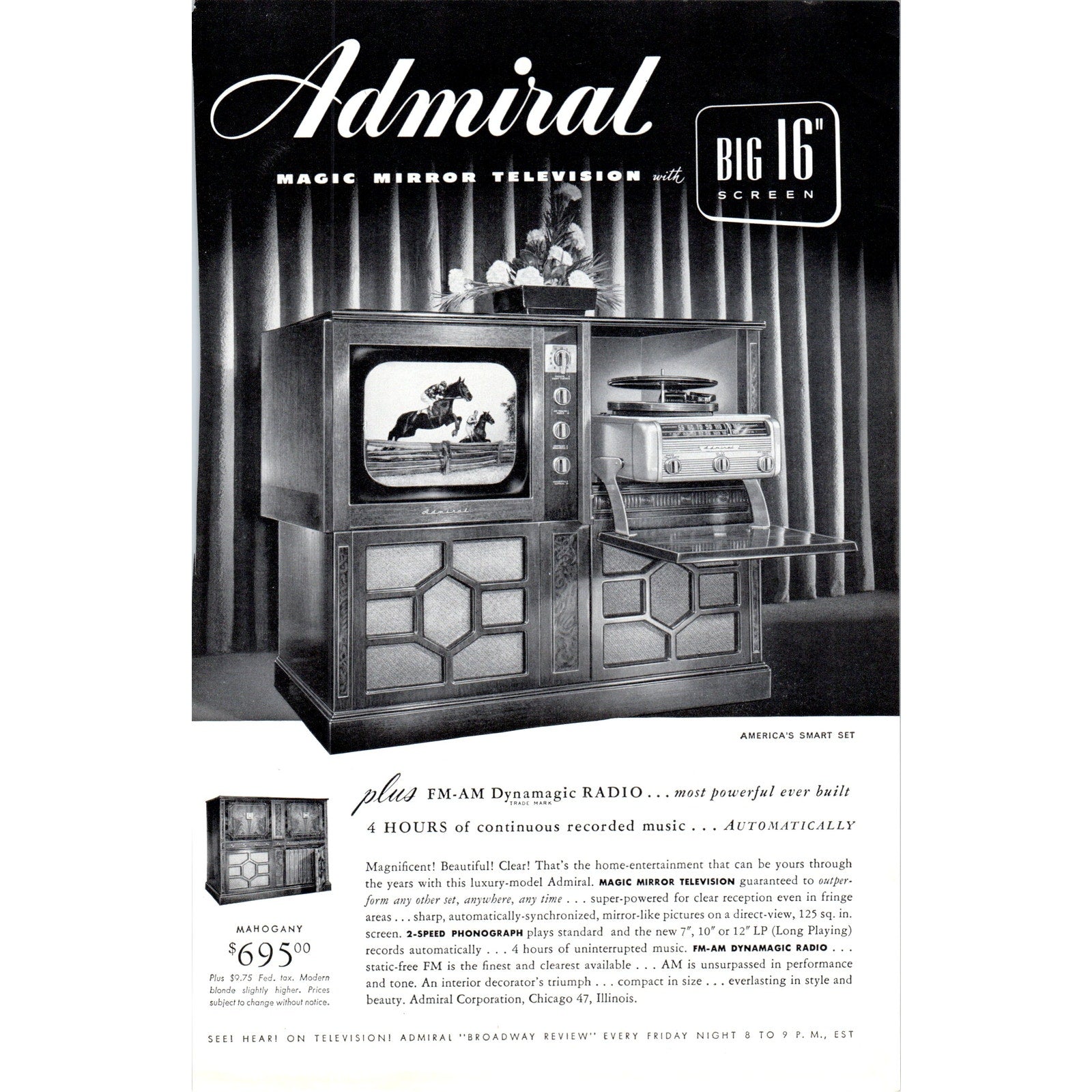 Admiral Magic Mirror Mahogany Television TV Teleset - Vintage Magazine Ad D20