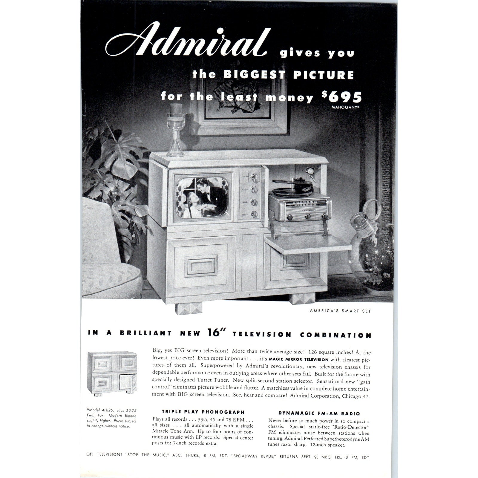 Admiral Magic Mirror Smart Set Television TV Teleset - Vintage Magazine Ad D20