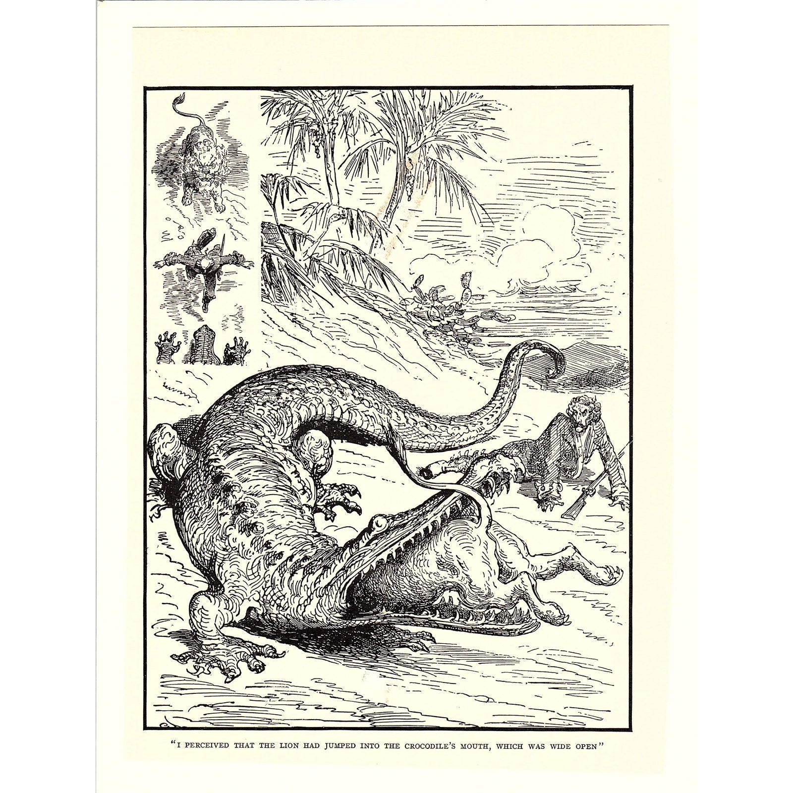 Adventures of Baron von Munchausen Lion in Crocodile's Mouth Art Print 7x9" V17