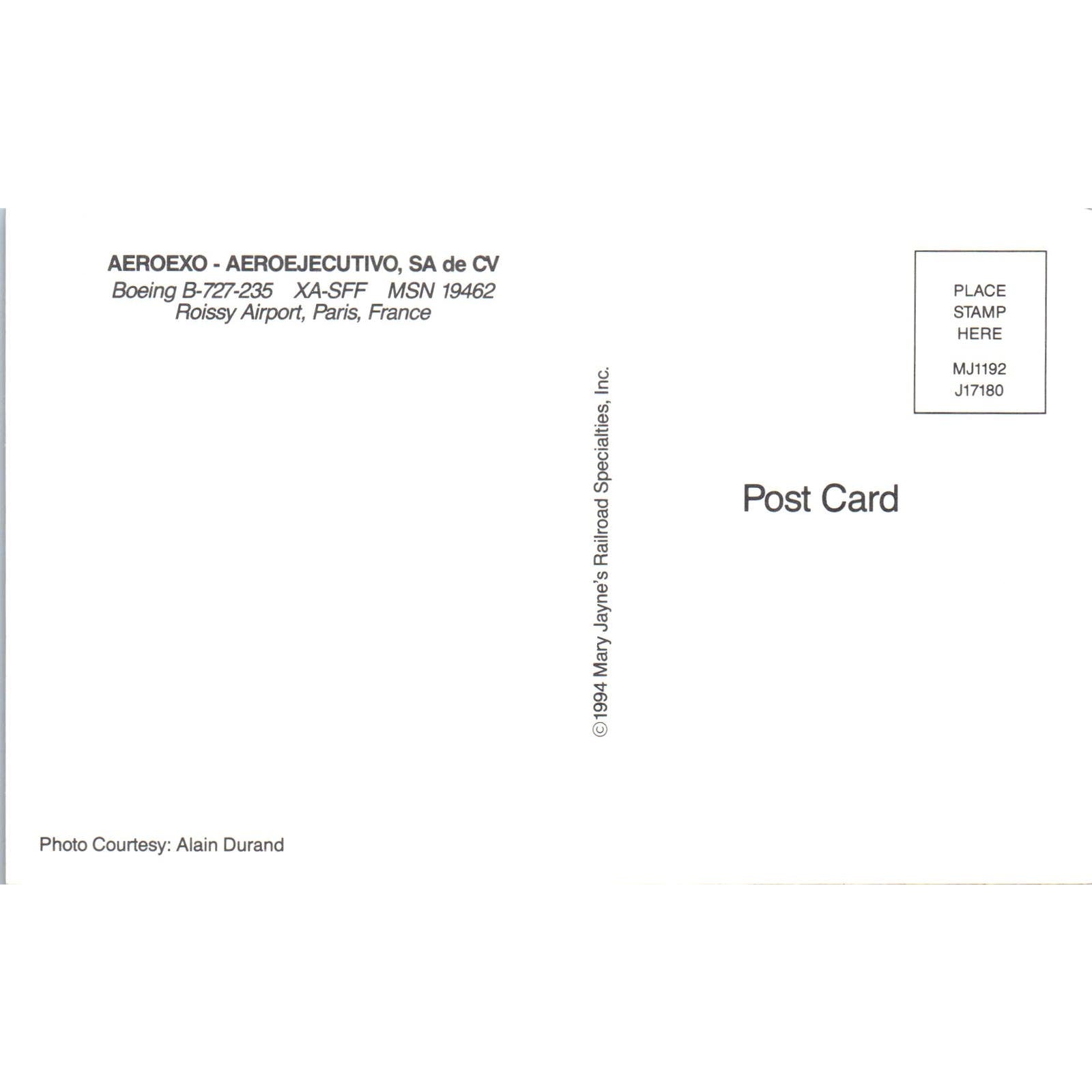AEROEXO Aeroejecutivo Boeing B-727-235 XA-SFF Vintage Postcard TG8-PC
