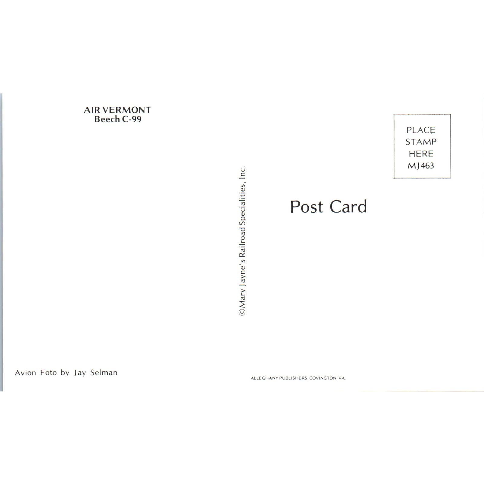 Air Vermont Beech C-99 Vintage Postcard PC2