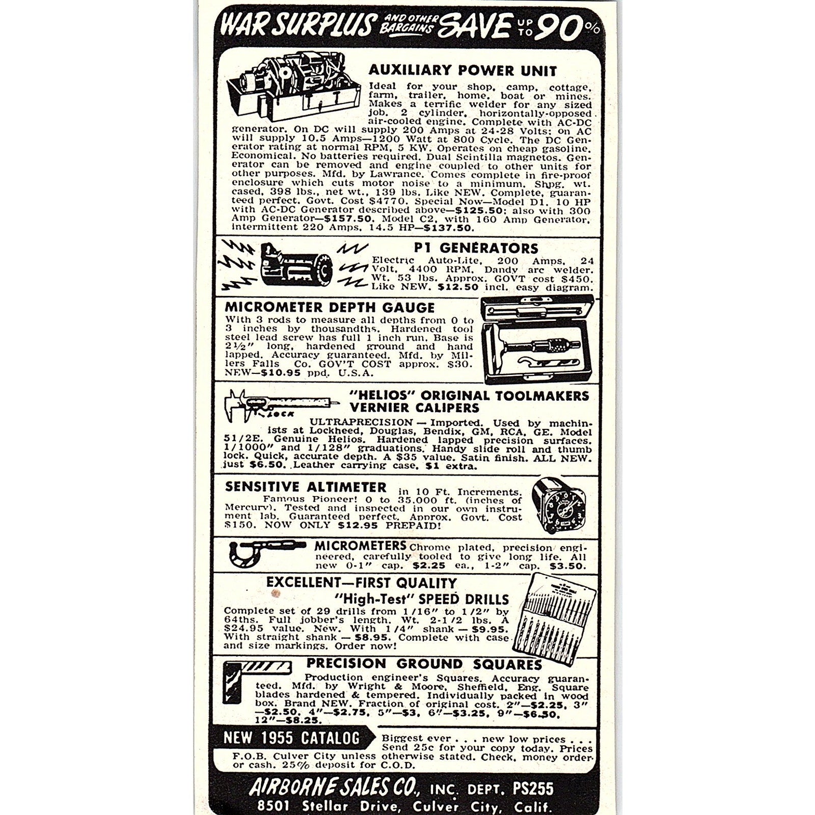 Airborne Sales Co Culver City CA War Surplus 1955 Ad AF9-6