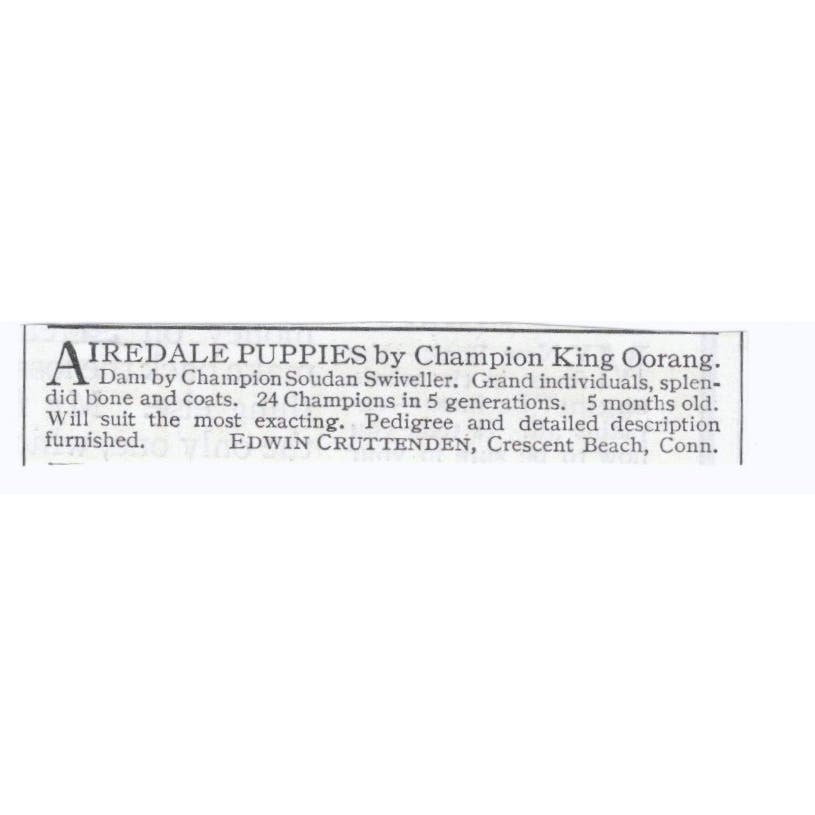 Airedale Champion King Oorang Edwin Cruttenden Crescent Beach CA 1913 Ad AE7-N8