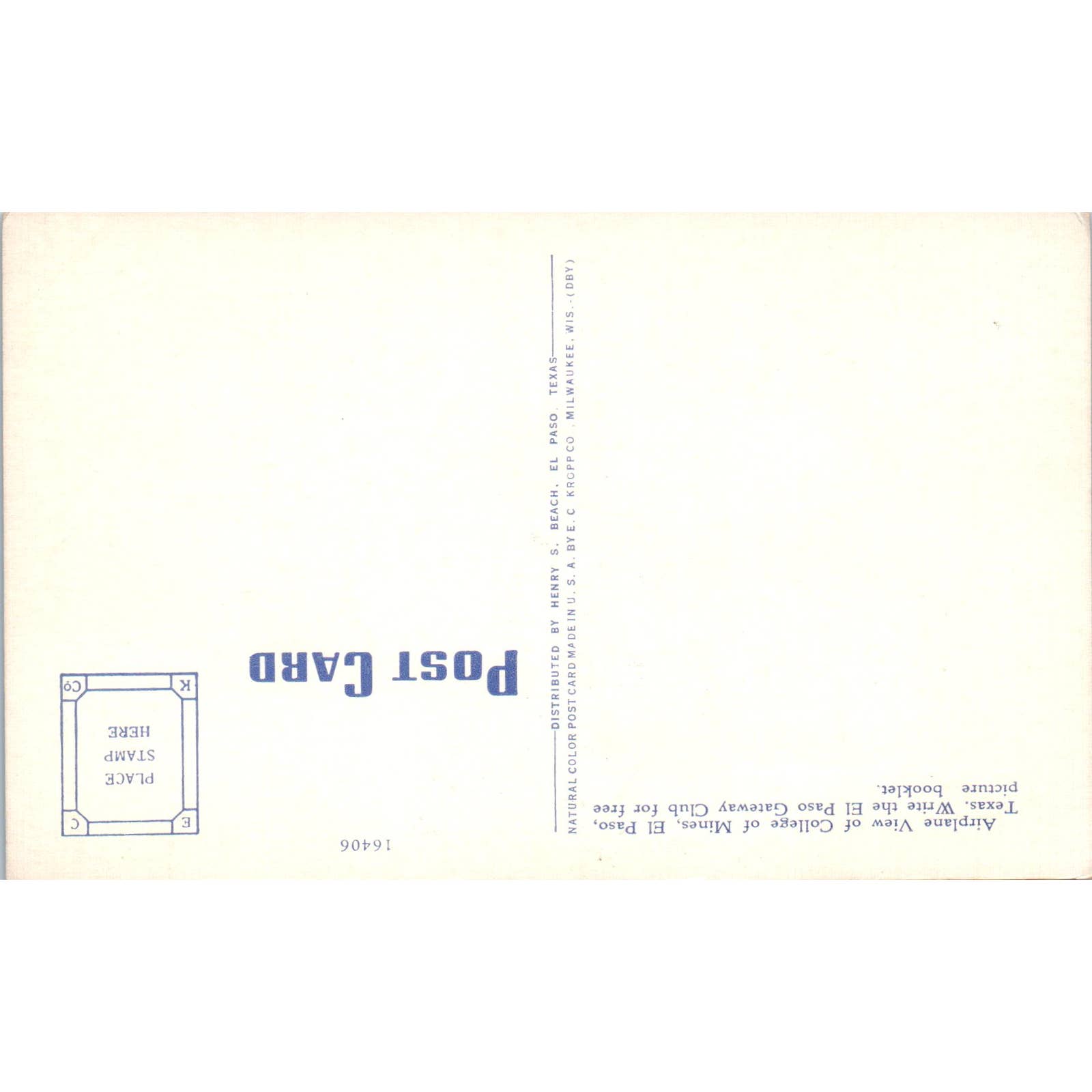 Airplane View of College Mines El Paso Texas Original Postcard TK1-21