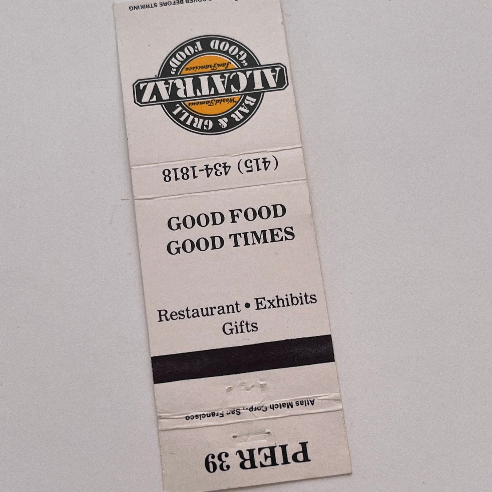 Alcatraz Bar & Grill Pier 39 Vintage Matchbook Cover TB6-MB2-3