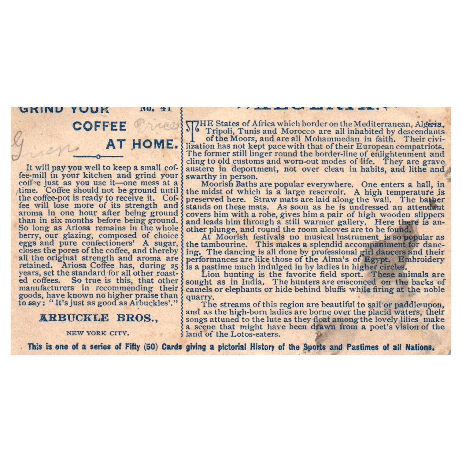 Algeria Scene - Arbuckle Bros Coffee - 1880s Victorian Trade Card TJ8-3
