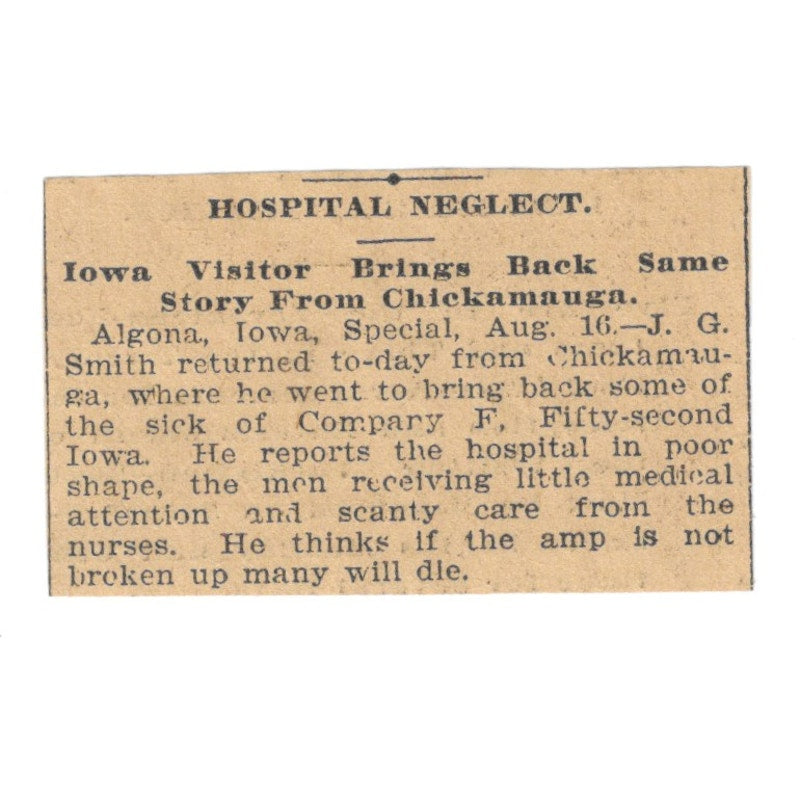 Algona Iowa Hospital Neglect 5th Reg. St. Paul 1898 Newspaper Ad AF2-S4