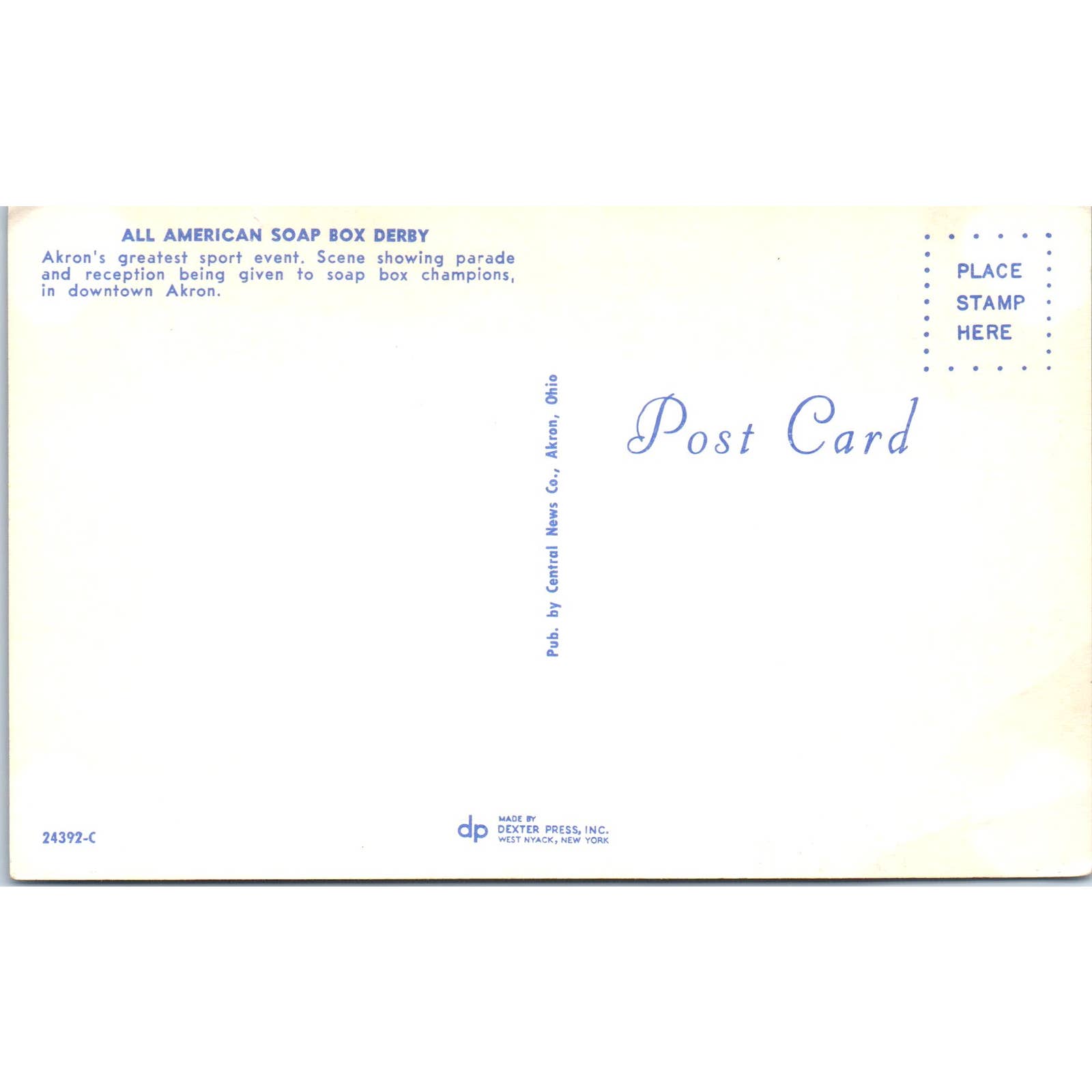 All American Soap Box Derby Champions Akron Ohio Original Postcard TK1-23