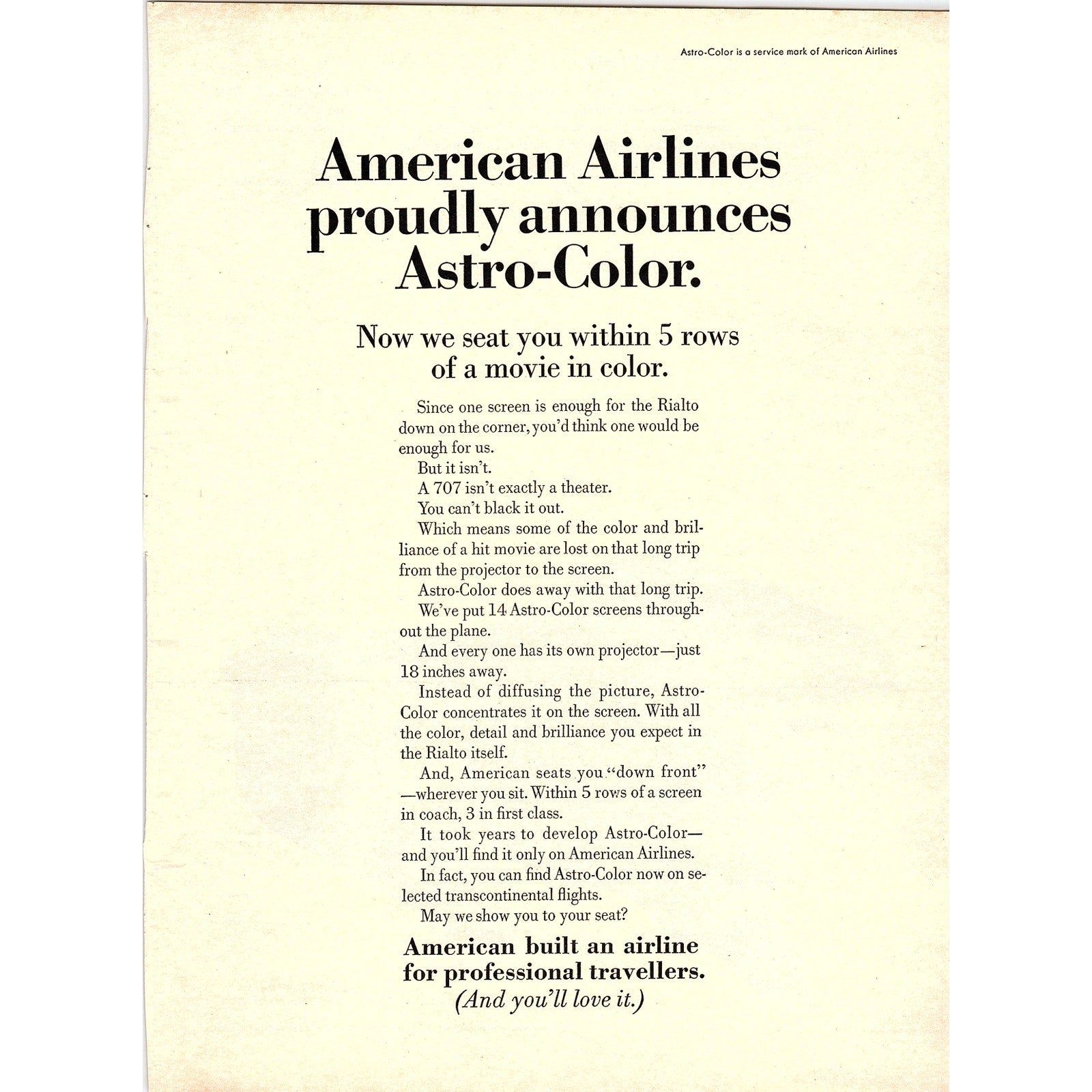 American Airlines Announces Astro-Color In-Flight Movies 1967 Ad AG1-16