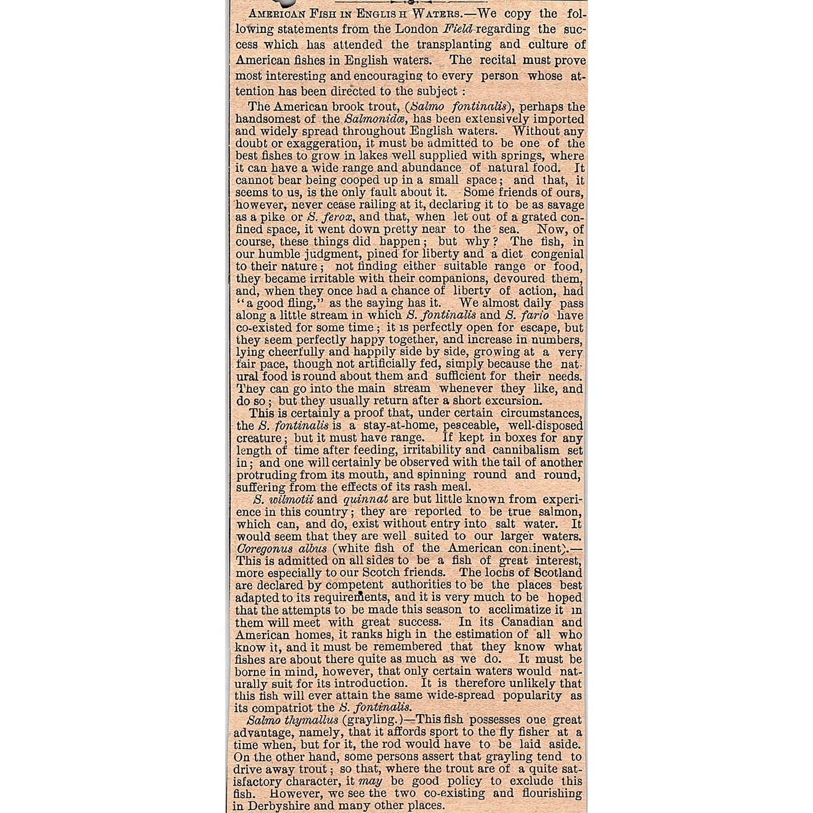 American Brook Trout - American Fish in English Waters 1878 Article AG2-7