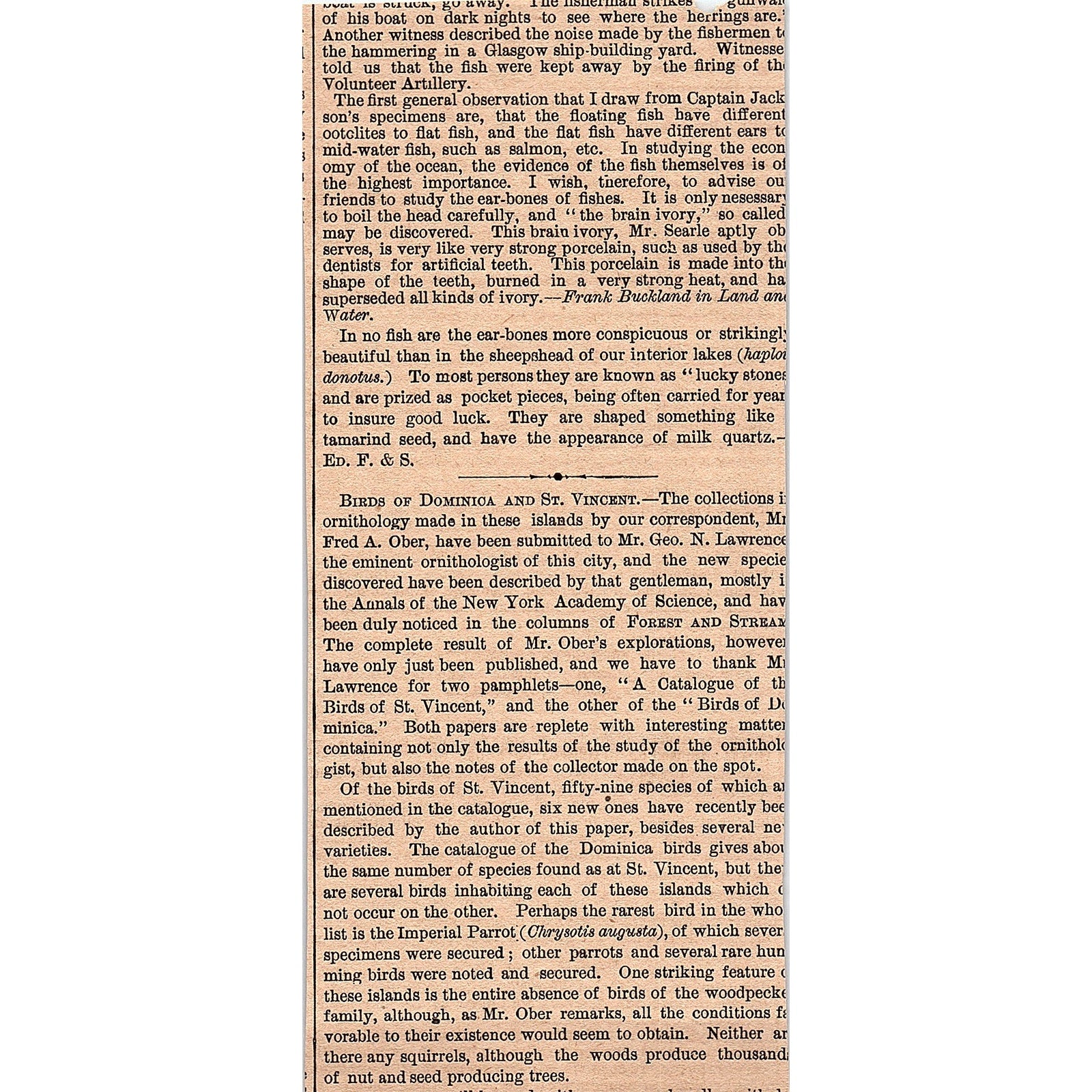Measures Approx 3" Wide. Original piece taken from 1878 Forest & Stream Rod & Gun Magazine. Paper is fragile and can flake off easily. May have small tears, chunks missing, or other blemishes you would expect from something this age. See pics for condition.
