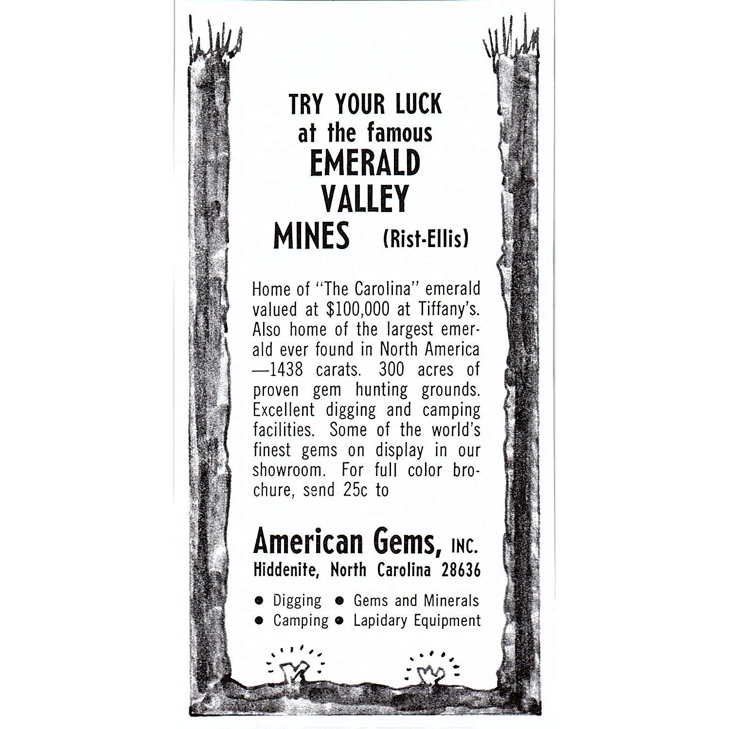 American Gems Inc Emerald Valley Mines Hiddenite NC 1972 Ad AF8-M3